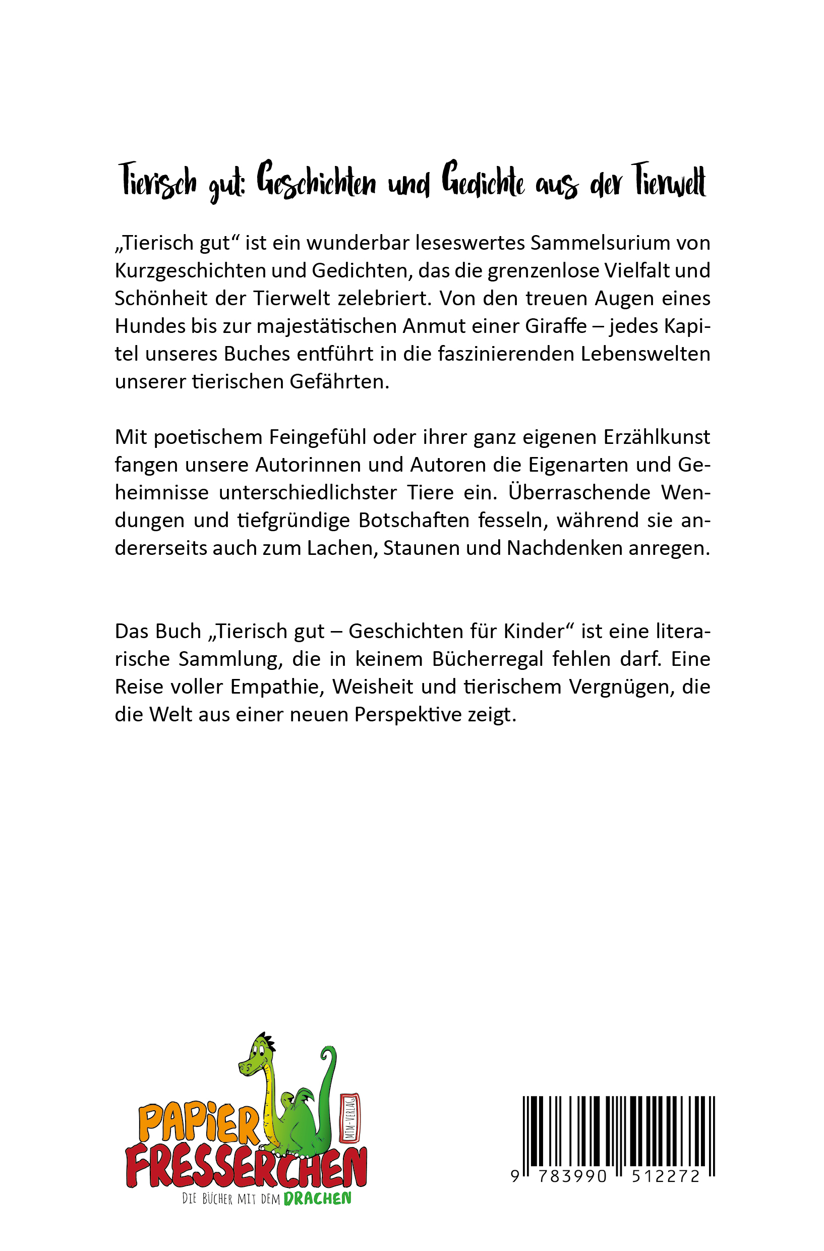 Das Buch „Tierisch gut – Geschichten für Kinder“ ist eine literarische Sammlung, die in keinem Bücherregal fehlen darf. Eine Reise voller Empathie, Weisheit und tierischem Vergnügen, die die Welt aus einer neuen Perspektive zeigt.