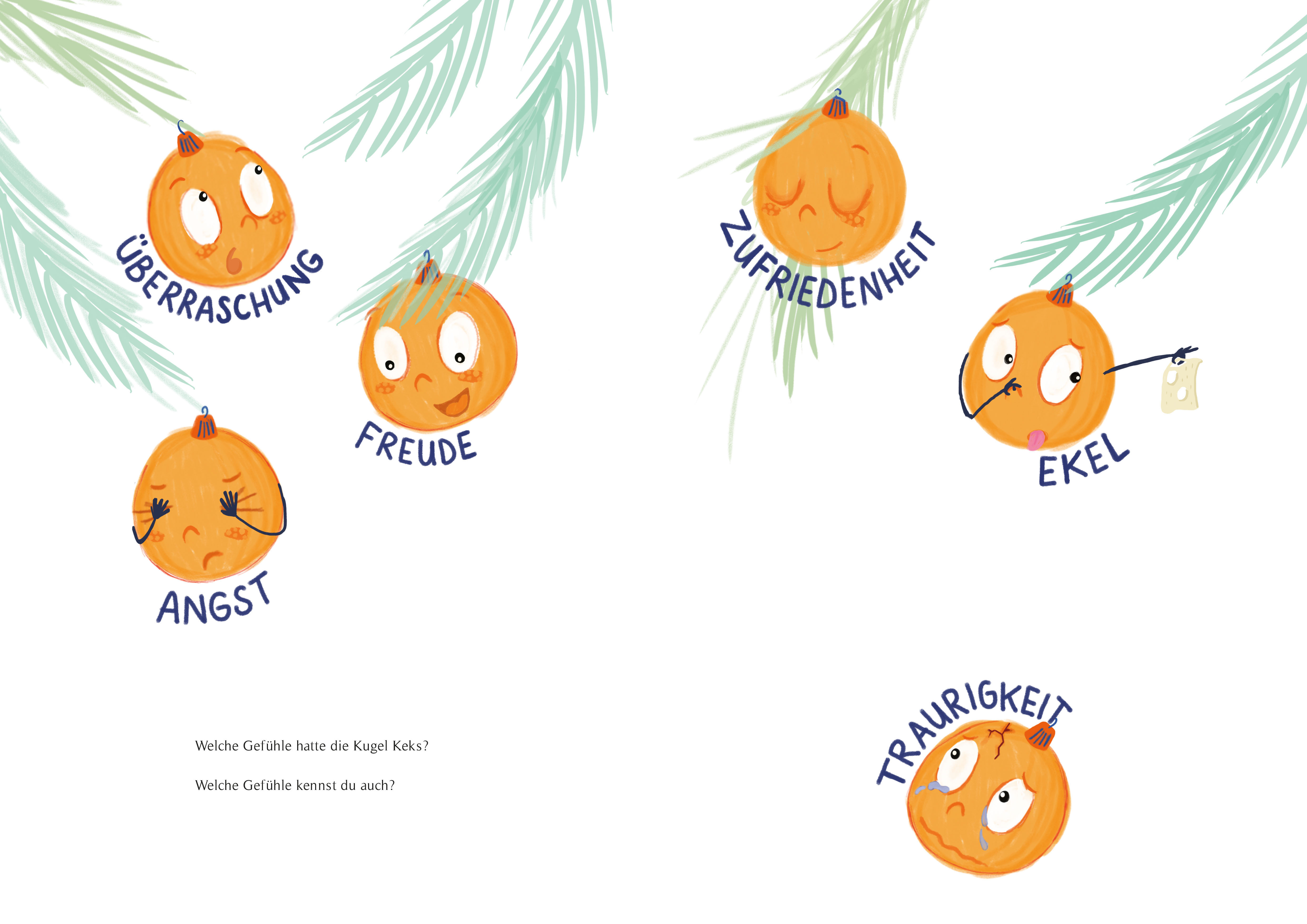 Gefühle der Weihnachtskugel Keks zu erkennen. Eine Gefühle-Seite am Ende des