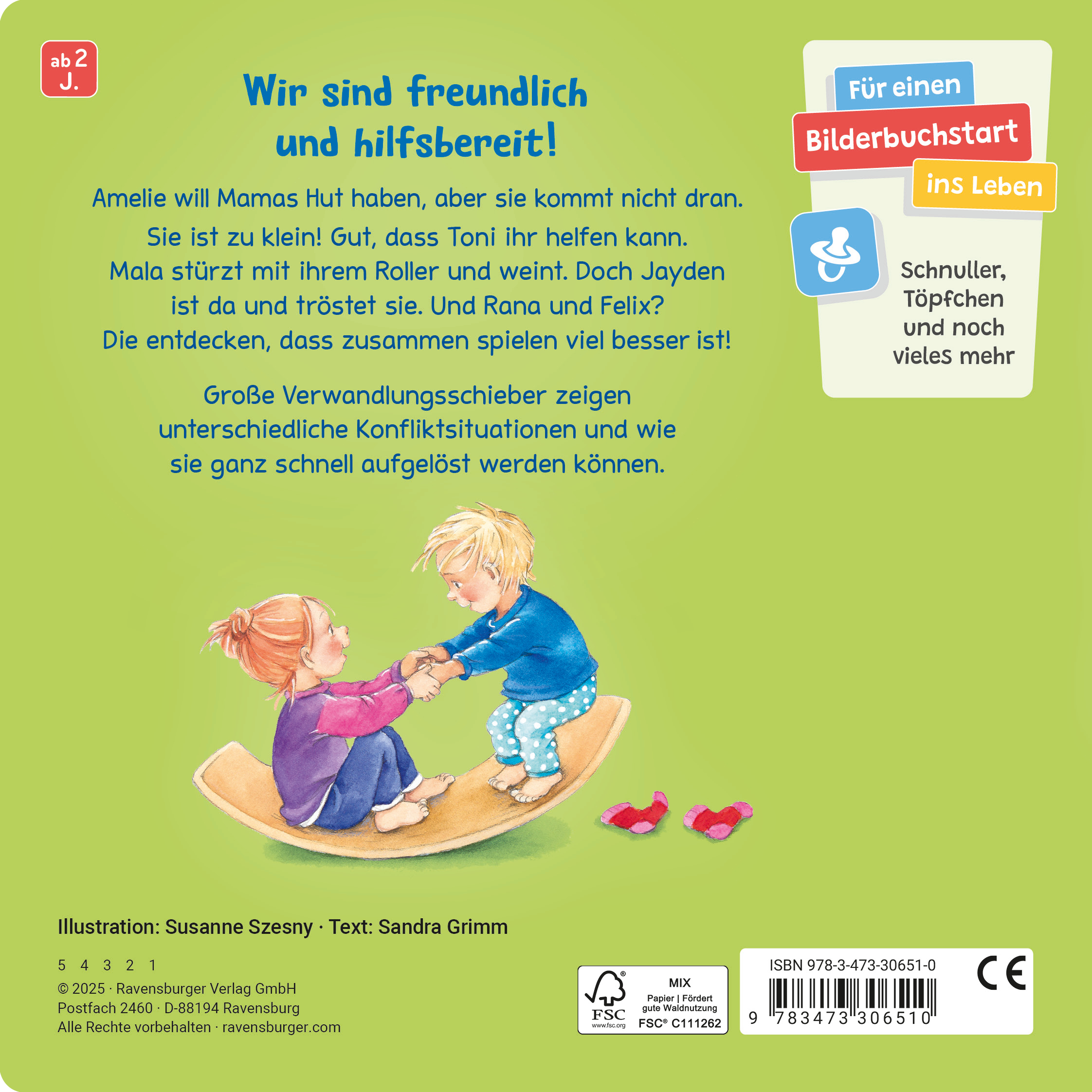 | Schlagworte | Beschäftigung • Bilderbuch • Bilderbücher • Buch • Bücher • Empathie • für Jungen • für Kinder ab 2 Jahre • für Mädchen • Gemeinsam • Geschenk • Geschenkidee • Kinderbuch • Kinderbücher • Konflikte auflösen • Kuscheln • Mitgefühl • Mitmachen • Schieben • sich vertragen • Streit • Streit schlichten • Szene verändern • Teilen • Trösten |