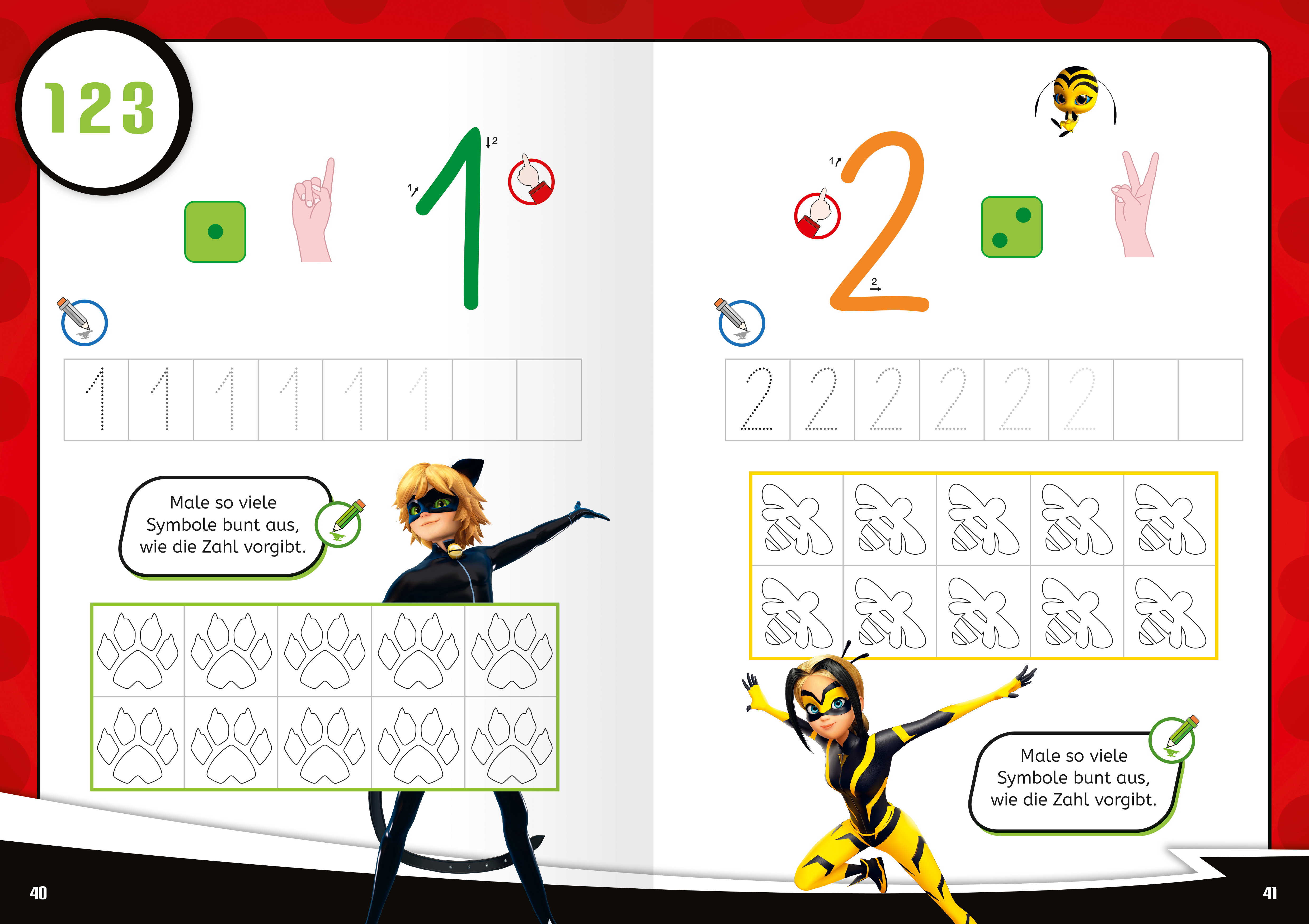 Das große Vorschulbuch für Fans von Miraculous In diesem zauberhaften Buch finden die Fans von Miraculous abwechslungsreiche Spiele und Übungen zur Vorbereitung auf die 1. Klasse: Mal- und Motorikspiele, Wahrnehmungsspiele und Übungen zu Buchstaben, Zahlen, Formen und Farben. Ladybug, Cat Noir und all die anderen Lieblinge sind auf jeder Seite mit dabei. So macht das Lernen gleich doppelt so viel Spaß! Mit Spaß zum Lernerfolg! Linien nachfahren, erste Buchstaben und Zahlen schreiben und Farben mischen: In diesem extradicken Vorschulbuch begleiten die Lieblinge aus Miraculous Kinder ab 5 Jahren bei vielen Übungen und Lernspielen. Die verschiedenen Übungen lassen keine Langeweile aufkommen, trainieren spielerisch Motorik und Konzentration und vermitteln erstes Wissen. Eindeutige Symbole (Schreibstift, Buntstift und Finger) zeigen intuitiv, was zu tun ist und ermöglichen den Kindern das selbstständige Lösen der Aufgaben. Falls doch einmal Unsicherheit herrscht: Am Ende des Buches finden sich alle Lösungen. Zwischendurch sorgen Malspiele und Rätsel rund um die Welt von Ladybug und Cat Noir für eine kleine Lernpause. Die abwechslungsreichen Aufgaben machen jede Menge Spaß, tragen zum erfolgreichen Schulstart bei und helfen dabei, das bereits Erlernte zu vertiefen.
