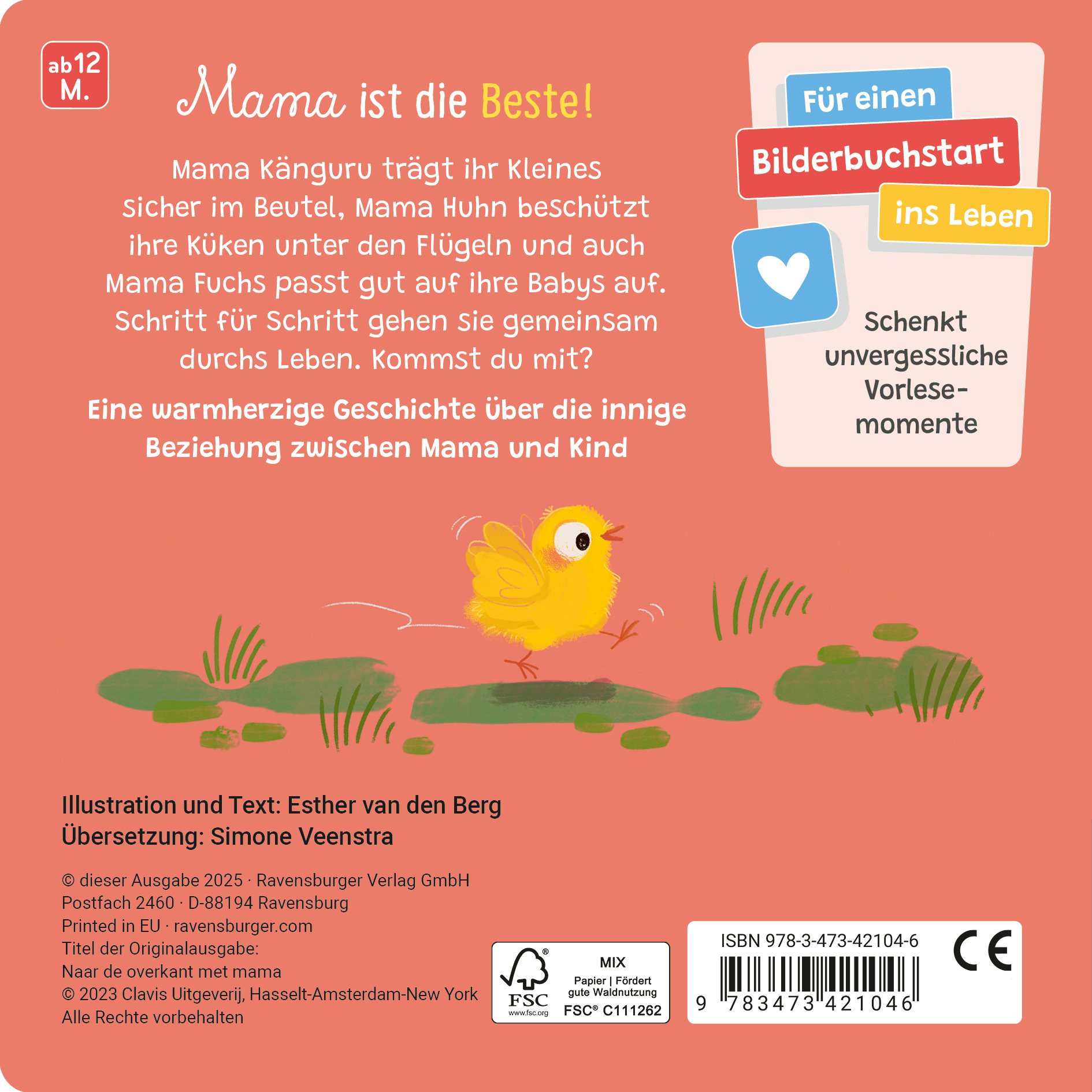 Wer ist die Beste, Tollste und Liebste auf der Welt? Mama! In dieser warmherzigen Vorlesegeschichte wird von der innigen Beziehung zwischen Müttern und ihren Kindern erzählt: von Mama Huhn, die ihre Küken unter ihren Flügeln beschützt; von Mama Känguru, die ihr Baby im Beutel warm hält und von Mama Faultier, die ihren Kindern das Klettern lernt. Eins ist sicher: Mama ist immer da für ihr Kleines, behütet und begleitet es auf seinem Lebensweg und gibt ihm ganz viel Zuneigung und Liebe! Die kurzen Texte auf den Seiten enden immer auf die gleiche Weise. Das ist einprägsam und gibt Kleinkindern, denen das Buch vorgelesen wird, das Signal, die Seite selbst umzublättern. So werden die Kleinen ins Vorlesen einbezogen und schöne, gemeinsame Vorlese-Momente geschaffen.