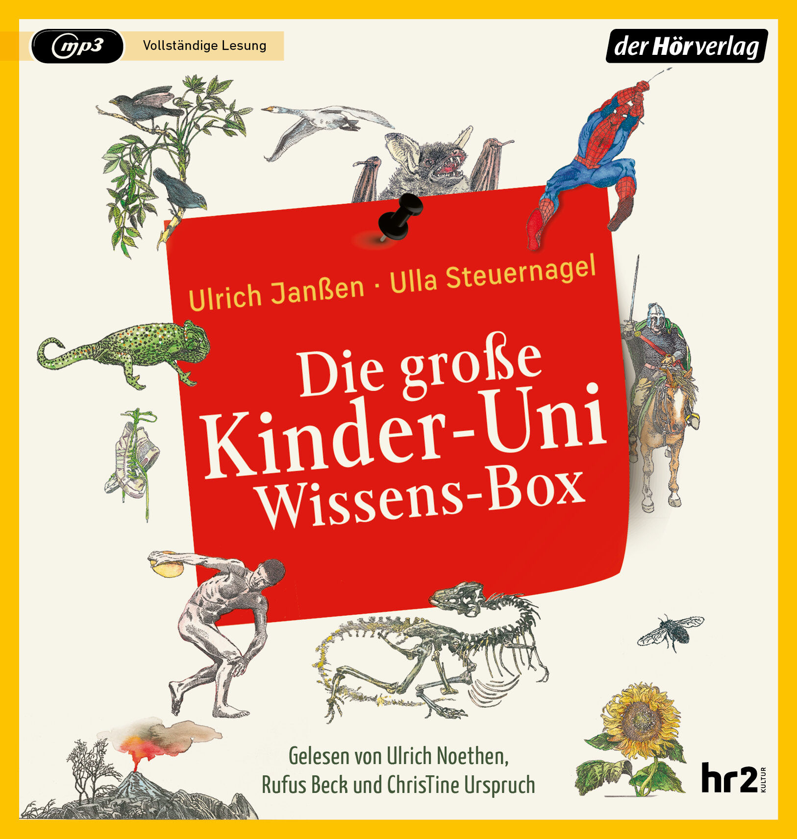 Fragen über Fragen, die Antworten über Antworten bekommen und zwar alles über den Menschen, unsere Geschichte und die Natur zusammengefasst zu einem Bundle. Die Kinder-Uni gibt leicht verständliche Antworten auf einige der schwierigsten und spannendsten Probleme der Welt.Geistreich und unterhaltsam gelesen von Rufus Beck, Ulrich Noethen und ChrisTine Urspruch.Semester eins enthält:Warum sind die Dinosaurier ausgestorben? Warum speien Vulkane Feuer? Warum gibt es Arme und Reiche? Warum lachen wir über Witze? Warum müssen Menschen sterben? Warum stammt der Mensch vom Affen ab? Warum beten Muslime auf Teppichen? Warum ist die Schule doof?Semester zwei enthält:Warum darf man Menschen nicht klonen? Warum sind die griechischen Statuen nackt? Warum träumen wir? Warum können wir hören? Warum dürfen Erwachsene mehr als Kinder? Warum wachsen Pflanzen? Warum bin ich Ich? Warum fallen Sterne vom Himmel?Semester drei enthält:Warum bauten die Ritter Burgen? Warum raufen Jungs und sind Mädchen zickig? Warum gibt es Blitz und Donner? Warum können Ärzte heilen? Warum sehen Fledermäuse mit den Ohren? Warum werden Sportler immer besser? Warum erzählen wir Geschichten? Warum können Mathematiker nicht rechnen?