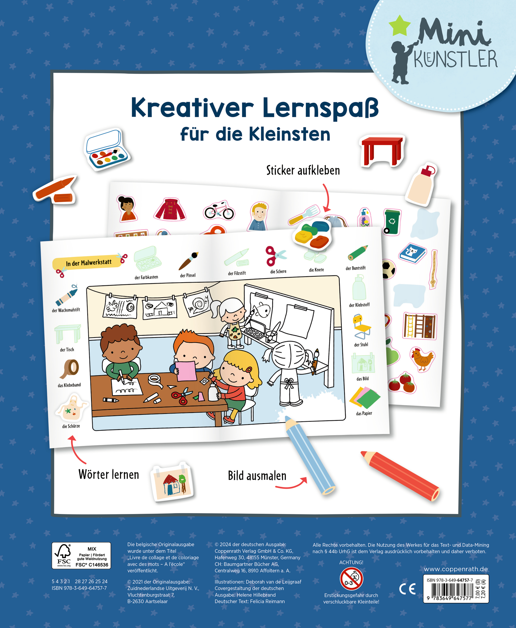 | Schlagworte | Bildwörterbuch • erste Wörter • Kindergarten • Malbuch • Mini-Künstler • Sticker • Tiere |