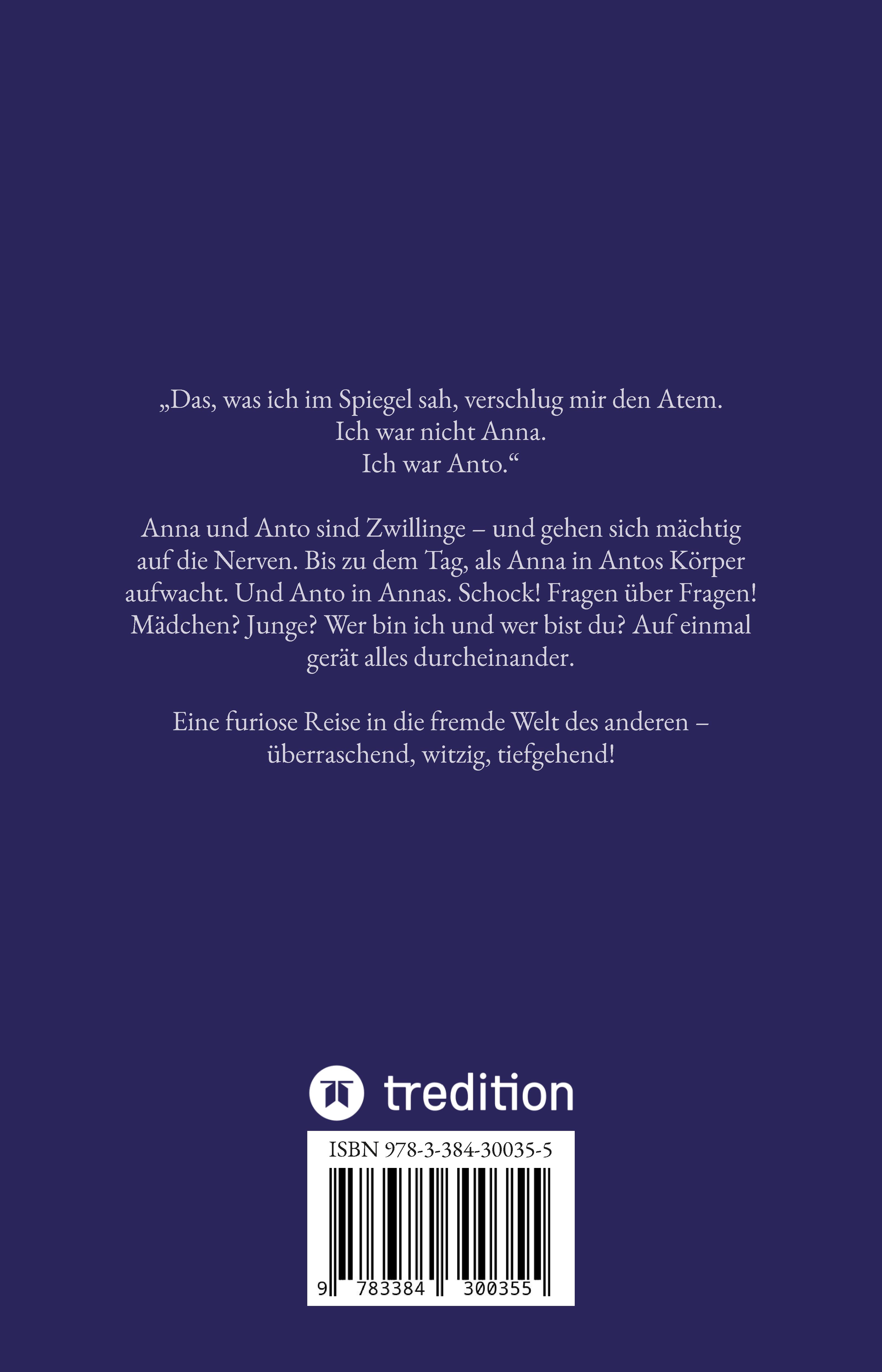Anna und Anto sind Zwillinge - und gehen sich mächtig auf die Nerven. Bis zu dem Tag, als Anna in Antos Körper aufwacht. Und Anto in Annas. Schock! Fragen über Fragen!Mädchen? Junge? Wer bin ich und wer bist du? Auf einmal gerät alles durcheinander. Eine furiose Reise in die fremde Welt des anderen - überraschend, witzig, tiefgehend!