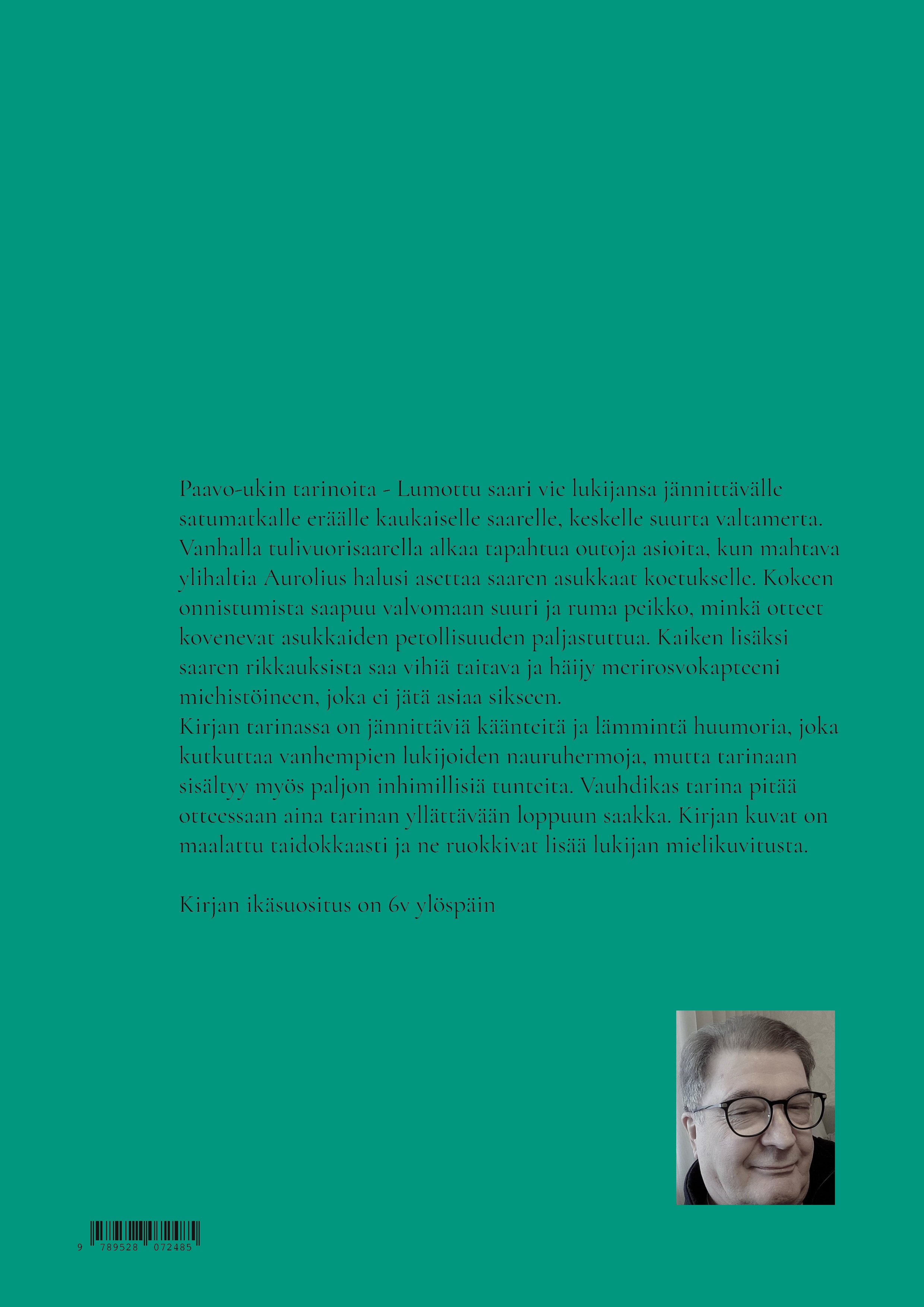 Paavo-ukin tarinoita - Lumottu saari vie lukijansa jännittävälle satumatkalle eräälle kaukaiselle saarelle, keskelle suurta valtamerta. Vanhalla tulivuorisaarella alkaa tapahtua outoja asioita, kun mahtava ylihaltia Aurolius halusi asettaa saaren asukkaat koetukselle. Kokeen onnistumista saapuu valvomaan suuri ja ruma peikko, minkä otteet kovenevat asukkaiden petollisuuden paljastuttua. Kaiken lisäksi saaren rikkauksista saa vihiä taitava ja häijy merirosvokapteeni miehistöineen, joka ei jätä asiaa sikseen.