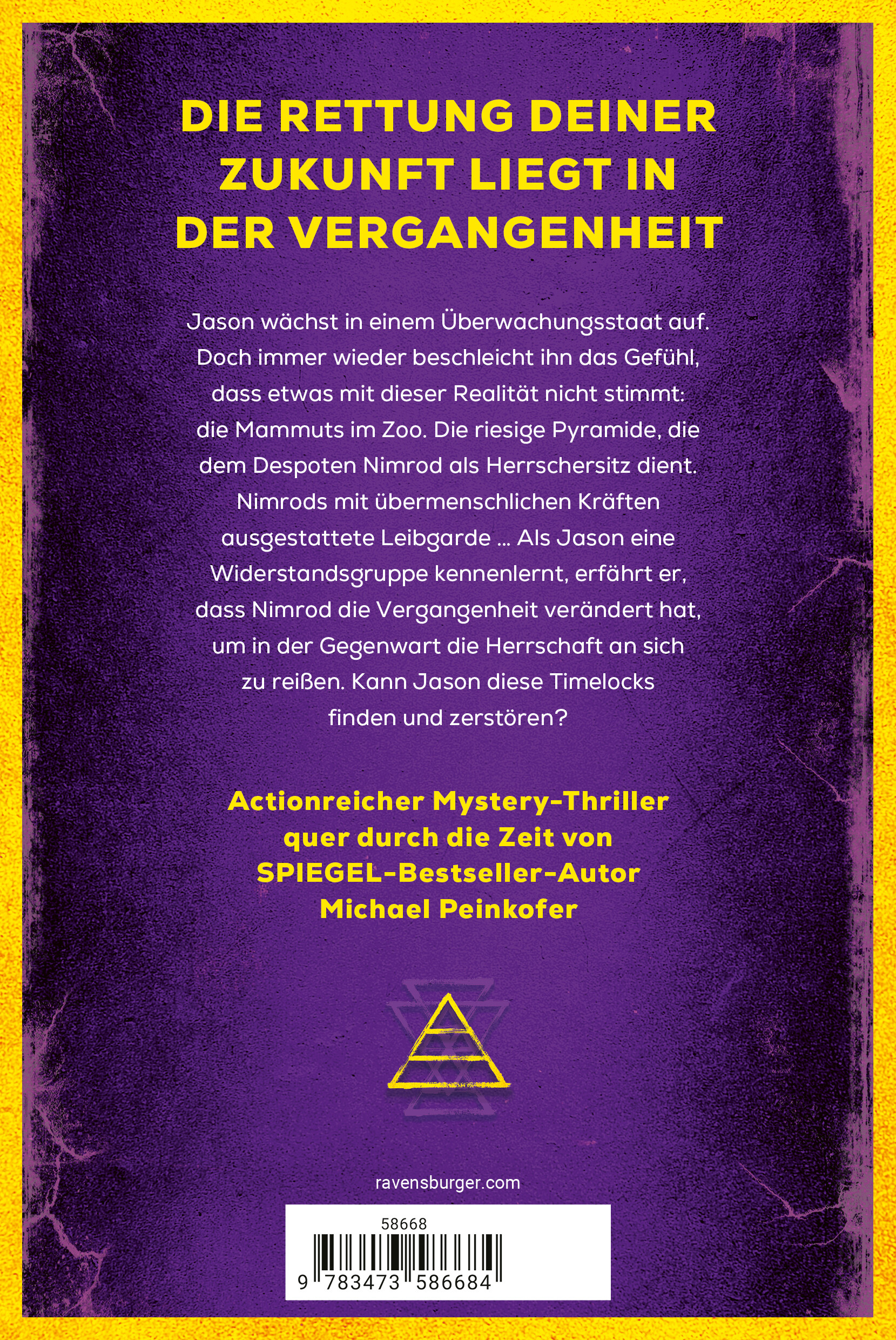 Die Rettung deiner Zukunft liegt in der Vergangenheit. Jason wächst in einem Überwachungsstaat auf. Doch immer wieder beschleicht ihn das Gefühl, dass etwas mit dieser Realität nicht stimmt: die Mammuts im Zoo. Die riesige Pyramide, die dem Despoten Nimrod als Herrschersitz dient. Nimrods mit übermenschlichen Kräften ausgestattete Leibgarde … Als Jason eine Widerstandsgruppe kennenlernt, erfährt er, dass Nimrod die Vergangenheit verändert hat, um in der Gegenwart die Herrschaft an sich zu reißen. Kann Jason diese Timelocks finden und zerstören? Erlebe alle Abenteuer der Mystery-Thriller-Reihe "Timelock"! Band 1: Zeitrebellen Band 2: Zeithüter (Herbst 2025) Band 3: Zeitmeister (Frühjahr 2026)