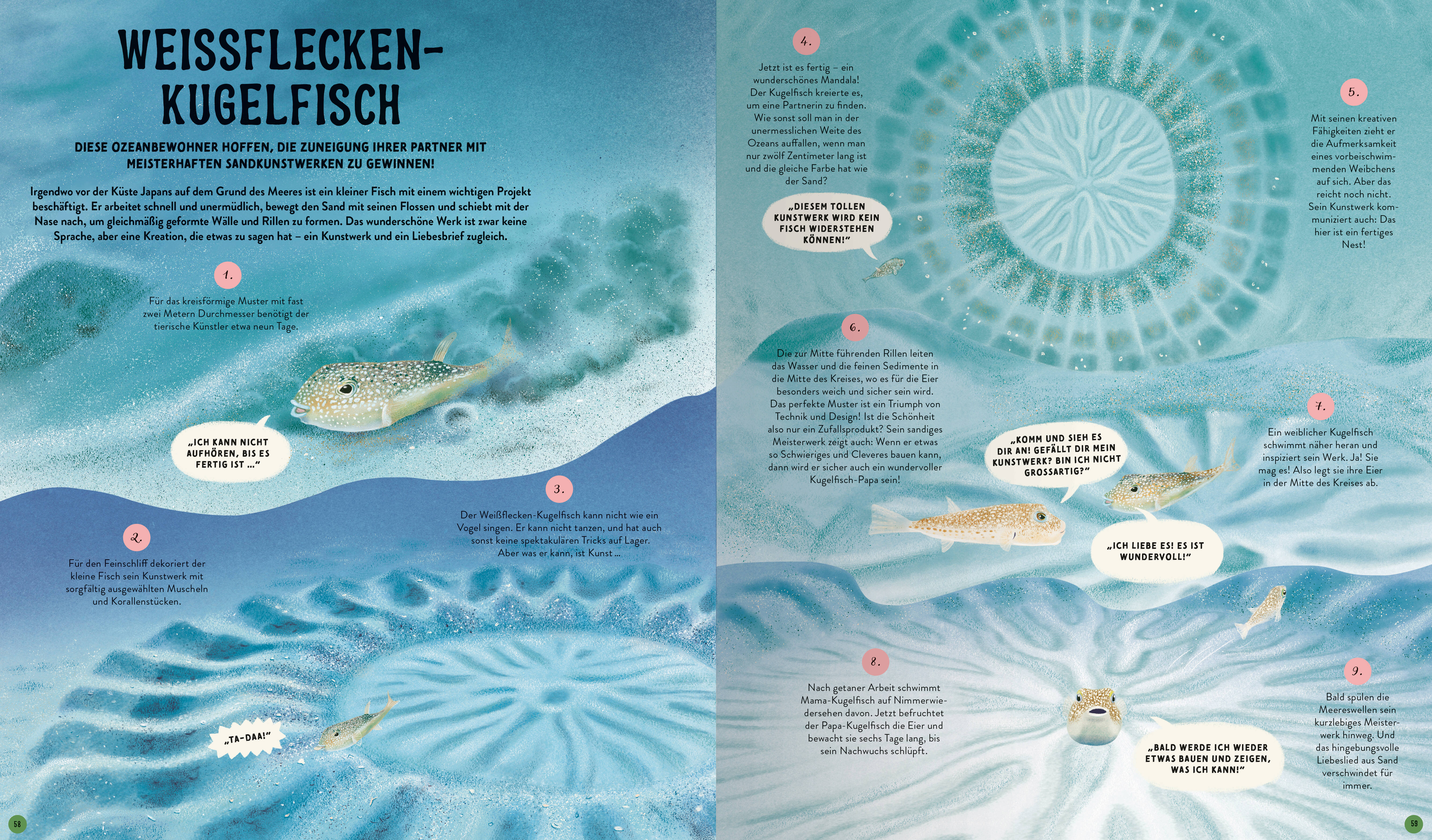 In der Natur wird fortwährend kommuniziert. Pflanzen, Tiere und Pilze tauschen über Klänge, Berührungen und Düfte fortlaufend Informationen aus. Ein Känguru warnt seine Artgenossen durch lautes Trommeln vor einer drohenden Gefahr. Die Honigbiene tanzt ihren Kolleginnen vor, wo es den besten Nektar zu holen gibt. Bäume und Pilze stehen über ein geheimes Netzwerk im Waldboden im Austausch. Die Sprachen, mithilfe derer Lebewesen miteinander kommunizieren, sind ungeheuer vielfältig. Die 48 Sachgeschichten aus aller Welt, die in diesem Buch versammelt sind, laden dazu ein, diese Vielfalt zu erkunden und die Natur mit neuen Augen zu sehen. Die Natur hat eine große Vielfalt an wundervollen, oft überraschenden Möglichkeiten geschaffen, damit Lebewesen miteinander kommunizieren können. Dabei geht es bisweilen laut zu: Der zauberhafte Gesang der Vögel, das Trompeten eines Elefanten oder das Quaken eines Froschs zählen zu den bekannteren Sprachen der Natur. Aber viele Tiere und Pflanzen nutzen stillere, geheimnisvollere Wege, um Informationen auszutauschen. Nashörner hinterlassen in ihrem Dung Botschaften für ihre Artgenossen. Schimpansen sagen sich wichtige Dinge durch Berührungen. Pilze und Bäume tauschen nicht nur Nährstoffe sondern auch Neuigkeiten über ein im Waldboden verborgenes Netzwerk aus. Dieses Buch lädt Kinder dazu ein, in 48 Sachgeschichten die wundersamen Sprachen der Natur zu entdecken und zu entschlüsseln. Dabei geht es nicht nur um das wie, sondern auch darum, wer, wann mit wem und warum kommuniziert.