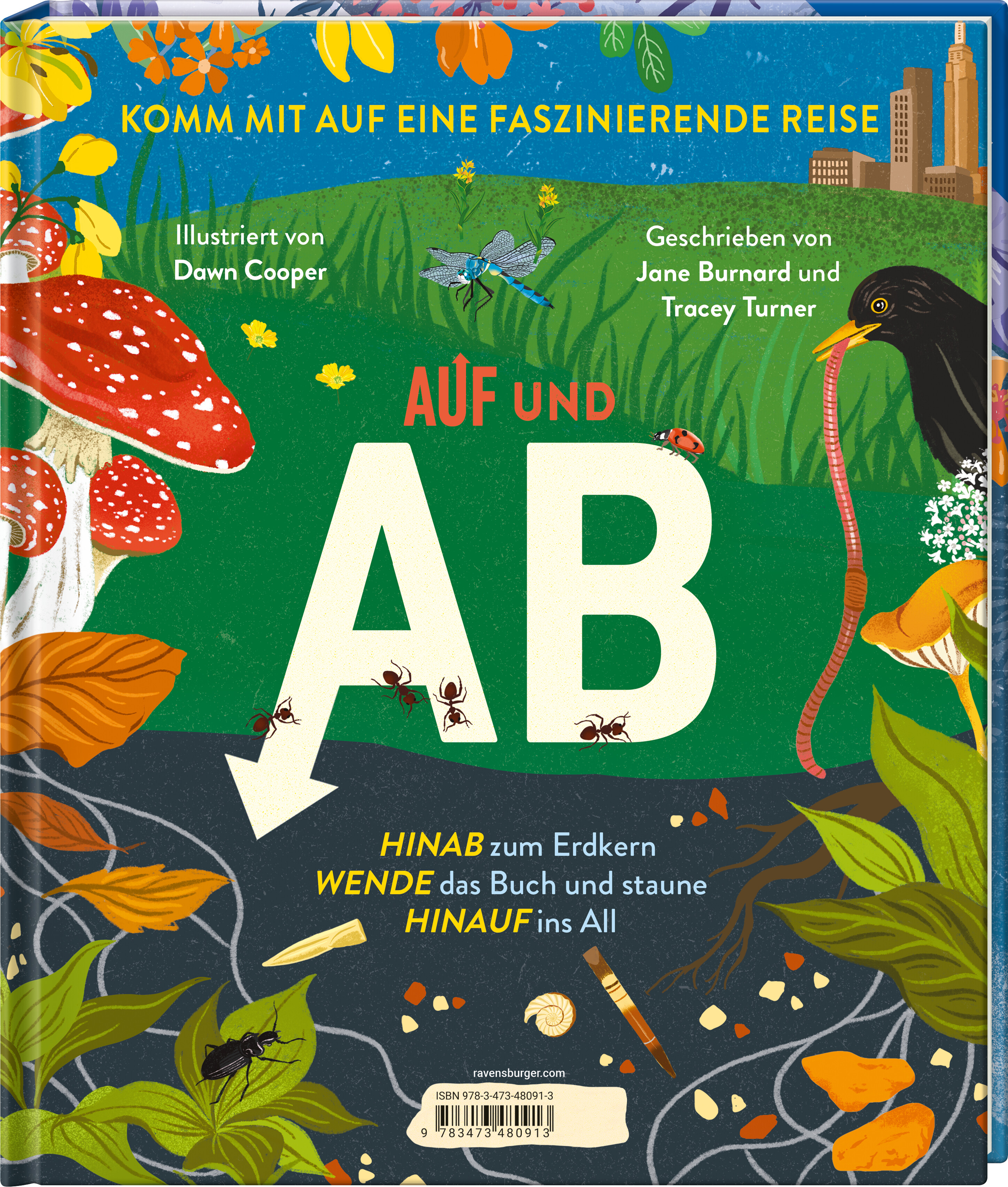 Flieg hinauf ins All und über die Milchstraße hinaus. Wende das Buch und tauche hinab bis zum Erdkern. Überall gibt es spannende Dinge zu entdecken. Dieses liebevoll und farbenfroh illustrierte Sachbuch lädt Kinder auf eine doppelte Reise ein. Je nachdem, von welcher Seite aus sie das Wendebuch zu lesen beginnen, geht es von der Erdoberfläche aus hinauf in den Himmel oder hinab unter die Erde. Vom Insektenflug bis jenseits der Milchstraße, vom Wurzelwerk des Waldes bis zum Erdmittelpunkt - an jeweils 14 Stationen erfahren die Leser viele spannende Fakten rund um die Wissensgebiete Erde, Weltall und Raumfahrt sowie Tiere und Pflanzen. Komm mit auf eine Spannende Reise! Ob es von der Erdoberfläche hinauf ins All oder hinunter bis zum Mittelpunkt der Erde geht, hängt davon ab, ob man das Buch von der einen oder der anderen Seite zu lesen beginnt. So oder so gibt es jede Menge zu entdecken: Flieg mit dem schnellsten Vogel um die Wette, triff die Astronauten auf der ISS oder betrachte die Milchstraße von Außen. Schau dir die Wurzeln von unten an, beobachte geheimnisvolle Tiefseetiere oder erkunde Vulkane am Meeresgrund.