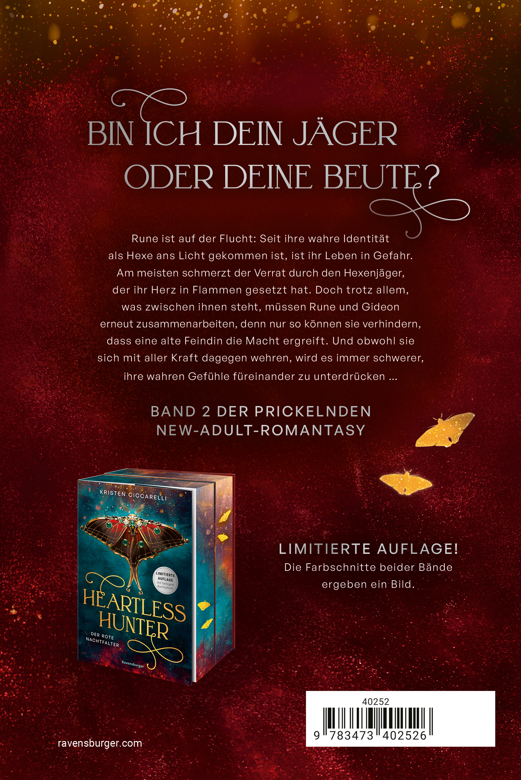 Bin ich dein Jäger oder deine Beute? Rune ist auf der Flucht: Seit ihre wahre Identität als Hexe ans Licht gekommen ist, ist ihr Leben in Gefahr. Am meisten schmerzt der Verrat durch den Hexenjäger, der ihr Herz in Flammen gesetzt hat. Doch trotz allem, was zwischen ihnen steht, müssen Rune und Gideon erneut zusammenarbeiten, denn nur so können sie verhindern, dass eine alte Feindin die Macht ergreift. Und obwohl sie sich mit aller Kraft dagegen wehren, wird es immer schwerer, ihre wahren Gefühle füreinander zu unterdrücken … Ein knisterndes Katz-und-Maus-Spiel zwischen Hexe und Hexenjäger. Band 2 der prickelnden, auf TikTok gefeierten New-Adult-Romantasy-Reihe von Bestseller-Autorin Kristen Ciccarelli