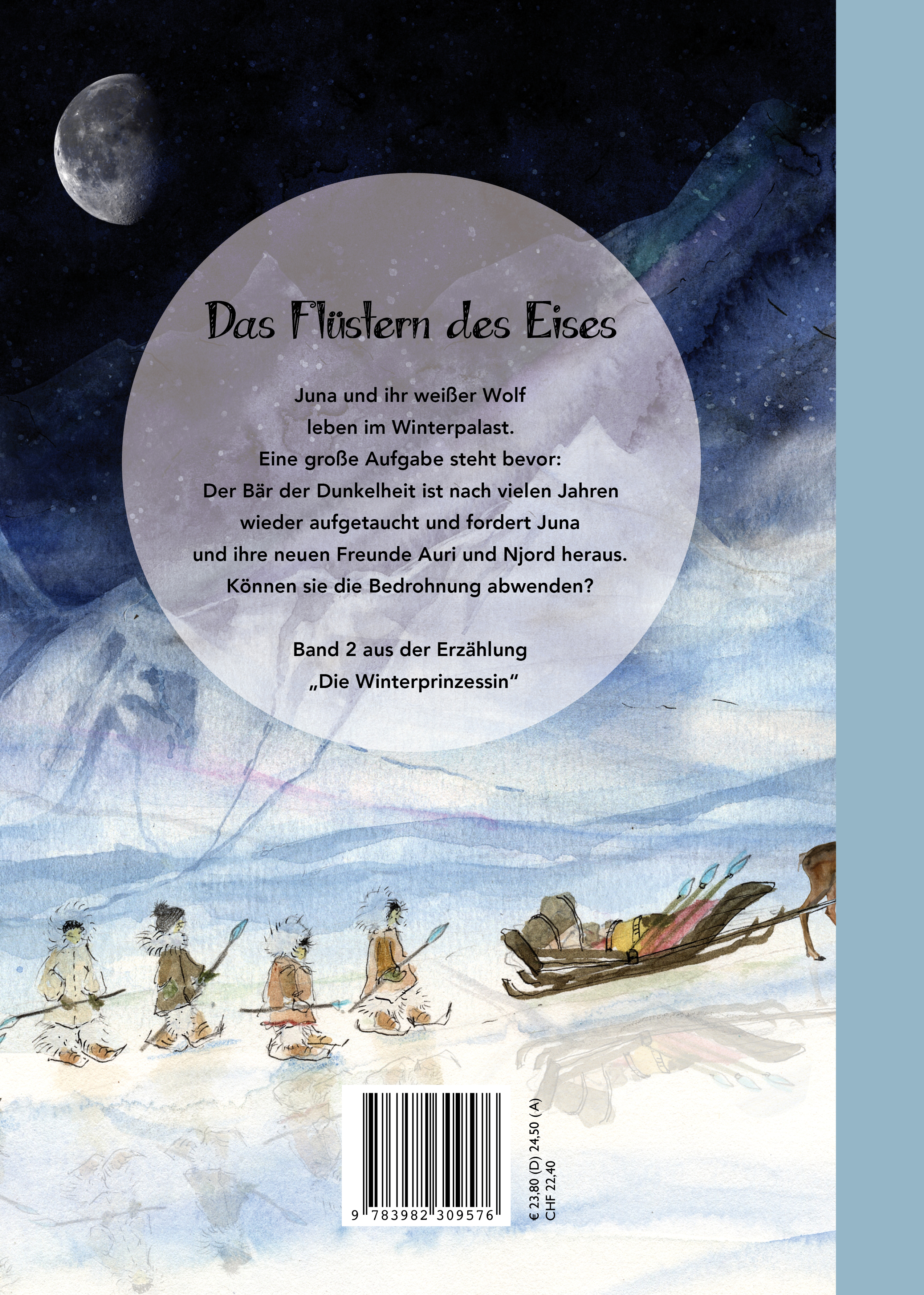 Das Flüstern des EisesJuna und ihr weißer Wolf leben mittlerweile im Winterpalast bei Junas Onkel Thorin. Juna lernt viel über die Lebensweise des Alten Volkes und deren magischen Fähigkeiten.Eine große Aufgabe steht bevor: Der Bär der Dunkelheit ist nach Jahren wieder aufgetaucht und fordert Junaund ihre neuen Freunde Auri und Njord heraus. Können sie die Bedrohnung abwenden? Band 2 aus der Erzählung: "Die Winterprinzessin"