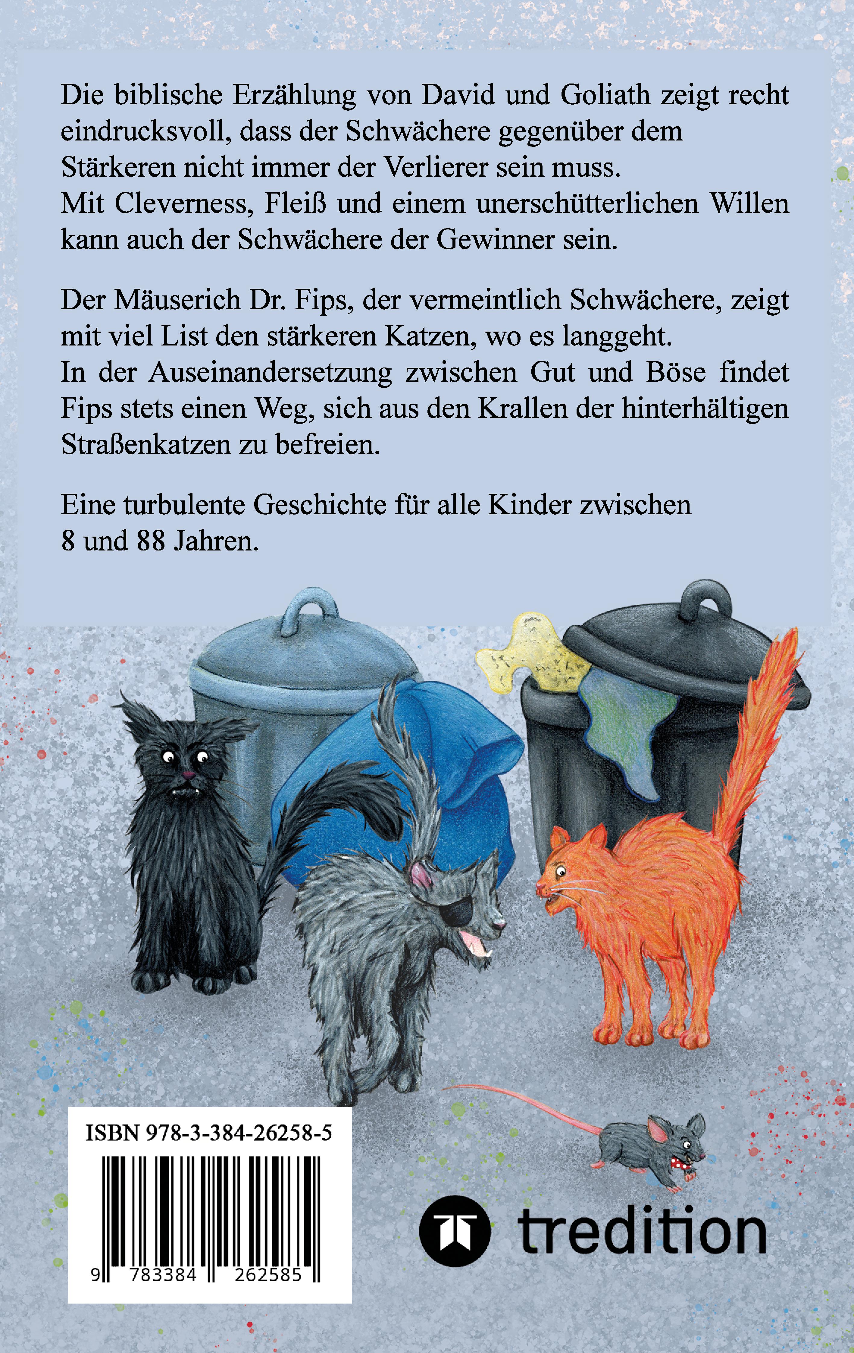 Fips, der clevere lernbegierige Mäuserich zeigt, dass sich Fleiß und Durchsetzungsvermögen immer lohnen. Mit Unterstützung seines Mentors, Professor Dreistein, arbeitet er sich in sein Lieblingsfach Architektur ein und löst zusammen mit dem Professor fast unmögliche Probleme. Dafür erhält er schließlich die Doktorwürde.Fürchten müssen sich vor ihm nur die Katzen , die ihm und seiner Familie stets nach dem Leben trachten. Doch Fips, der Kämpfer, findet immer einen Weg, wie er seinen Erzfeinden ein Schnippchen schlagen kann. Der wuschelige Hund der Familie Dreistein steht ihm dabei helfend zur Seite.Nach seinem Studium an der Universität fliegt er mit Professor Dreistein nach Kanada. Unter Einsatz seines Lebens bewahrt er die Hauptstadt Montreal von einem Black-Out. Wenig später wird er schon wieder von Straßenkatzen angegriffen. Doch Fips findet wieder einmal Wege, wie man sich vor den hinterhältige n Angriffen der Katzen schützt. Am Ende der Geschichte findet Dr. Fips seinen ganz privaten Schatz.