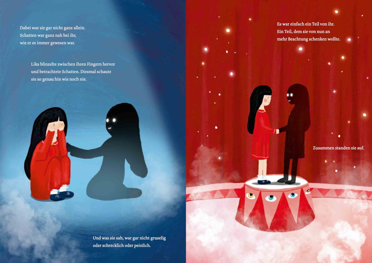 »Jetzt setzt sie ihre Reise in die Welt der Bilderbuchkunst fort und entführt uns in den geheimnisvollen 'Zirkus der Schatten', der Verborgenes aus unserer inneren Welt ans Licht bringt.«