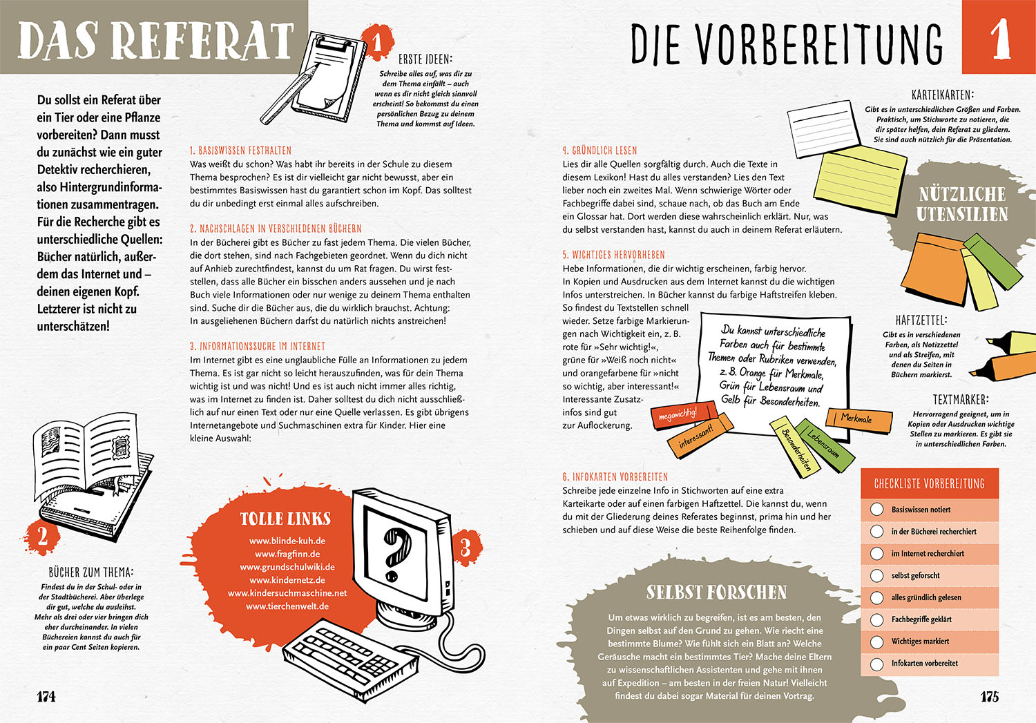 Winzig, giftig, schnell: Die Natur steckt voller faszinierender Fakten. Das umfassende Grundschullexikon stellt 300 Tiere, Pflanzen und Pilze und ihren Lebensraum vor. Mit leicht verständlichen Texten, kurzen Steckbriefen und über 1000 Farbfotos. Inklusive kindgerechten Anleitungsseiten für das erste Referat: von der Vorbereitung, dem Material bis hin zum erfolgreichen Präsentieren.