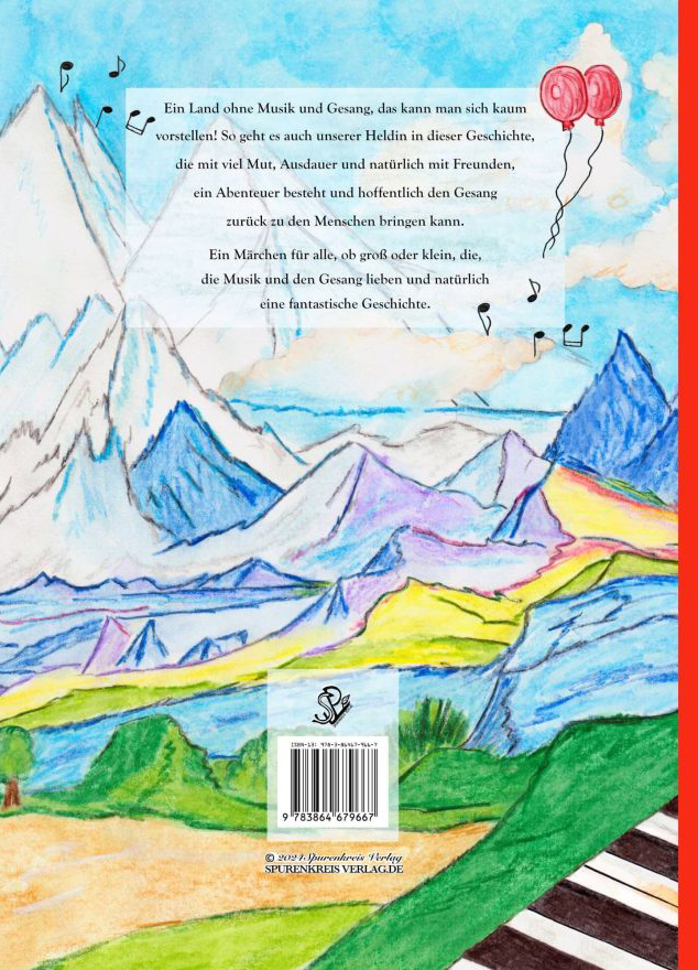 In diesem Buch gibt es ein Land ohne Musik und Gesang, das kann man sich kaum vorstellen! So geht es auch unserer Heldin in dieser Geschichte, die mit viel Mut, Ausdauer und natürlich mit Freunden ein Abenteuer bestehen muss, um die Fee des Gesanges zu suchen. Diese Fee, so hofft das Mädchen Marie, wird ihr hoffentlich helfen, den Gesang und die Musik zurück zu den Menschen zu bringen.