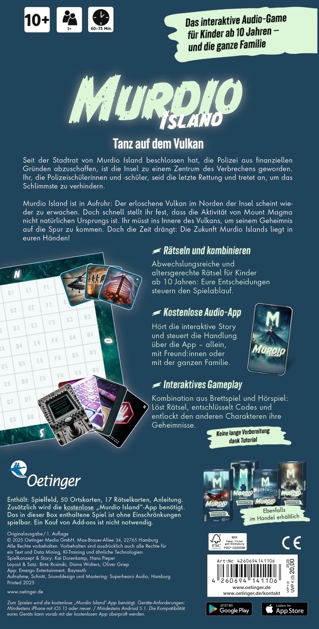 | Schlagworte | audio spiel • Detektivspiel • echoes • Escape • Exit Game • Gesellschaftsspiel für die ganze Familie • Kooperatives Spiel • Krimi für Kinder • mystery game • Rätsel lösen • Rätselspiel für Jugendliche • Rätselspiel für Kinder • spannende Fälle lösen • Spiel für eine Person |
