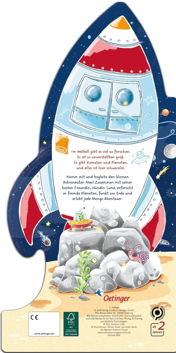 | Schlagworte | Astronaut • Außerirdische • Galaxie • ISS • Lieblingsfahrzeuge • MINT • Nasa • Rakete • Raumfahrt • Science Fiction • Weltall • Weltraum |
