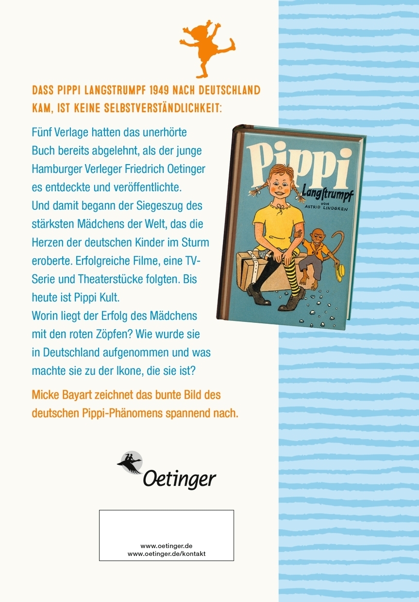Dass Pippi Langstrumpf Ende der 1940er Jahre nach Deutschland kam, ist keine Selbstverständlichkeit: Fünf Verlage hatten das unerhörte Buch bereits abgelehnt, als der junge Hamburger Verleger Friedrich Oetinger es entdeckte und veröffentlichte. Und damit begann der Siegeszug des stärksten Mädchens der Welt, das die Herzen der deutschen Kinder im Sturm eroberte. Erfolgreiche Filme, eine TV-Serie und Theaterstücke folgten. Bis heute ist Pippi Kult. Worin liegt der Erfolg des Mädchens mit den roten Zöpfen? Wie wurde sie in Deutschland aufgenommen und was machte sie zu der Ikone, die sie ist? Micke Bayart zeichnet das bunte Bild des deutschen Pippi-Phänomens.