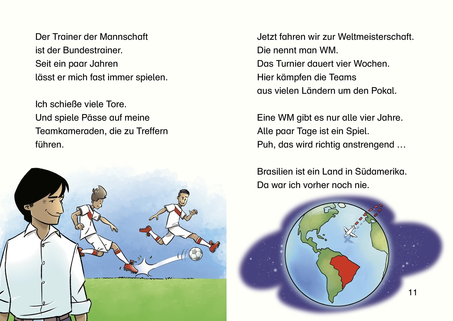 | Schlagworte | Brasilien 2014 • Bundesliga • einfacher Wortschatz • Erstes Lesen • Fußball • Grundschulbuch • Grundschule • Illustration • kurze Sätze • Lernbuch • Leseförderung • Lesen lernen • Lesenlernen • Leseübung • Mut • Nationalelf • Nationalmannschaft Deutschland • Schulanfänger • Spaß • Sport • TikTok • Verein • Viele Bilder • WM |