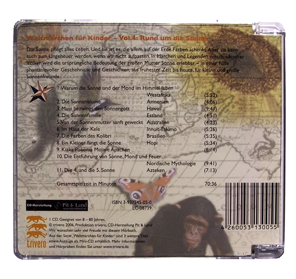 | Schlagworte | AUDIO/Belletristik/Märchen, Sagen, Legenden • Audio-CD • AUDIO/Kinder- und Jugendbücher/Märchen, Sagen • Aztek • Erzählungen • exotisch • Geschichten • Grundelemente • Helios • Hopi • Hörbücher • Hörbuch; Märchen/Sagen • Indianer • Innuit • Interkulturell • international • Isis • Länder • Legende • Legenden • Märchen • Märchen/Sagen (Audio-CDs) • Märchen/Sagen; Kinder-/Jugendliteratur • Märchen/Sagen; Kinder-/Jugendliteratur (Audio-CDs) • Maya • mescal • Mojave • Mythen • Mythologie • Naturmärchen • pancha mama • Quetzalcoatl • Ra • Sagen • Schöpfungsmythen • SOL • Sonne • sonnengeschichten • Sonnengott • sonnenlegende • Sonnenmärchen • Sonnenmutter • sonnenmyth • Vier Elemente • weltmaerchen • Weltmärchen |