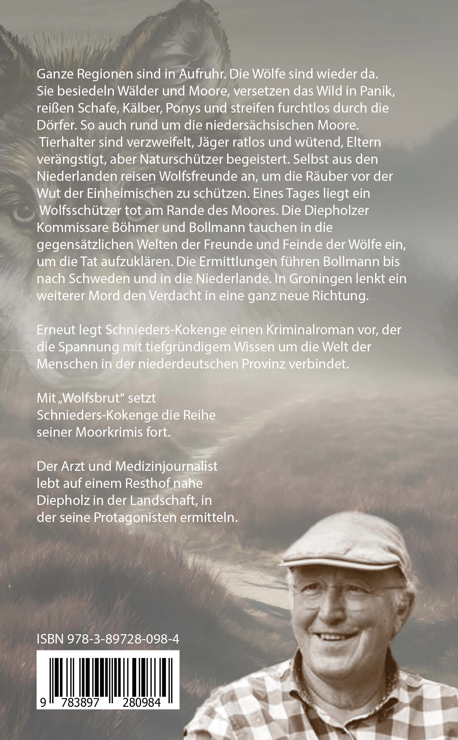 Mit „Wolfsbrut“ setzt Schnieders-Kokenge die Reihe seiner Moorkrimis fort. Der Arzt und Medizinjournalist lebt auf einem Resthof nahe Diepholz in der Landschaft, in der seine Protagonisten ermitteln.