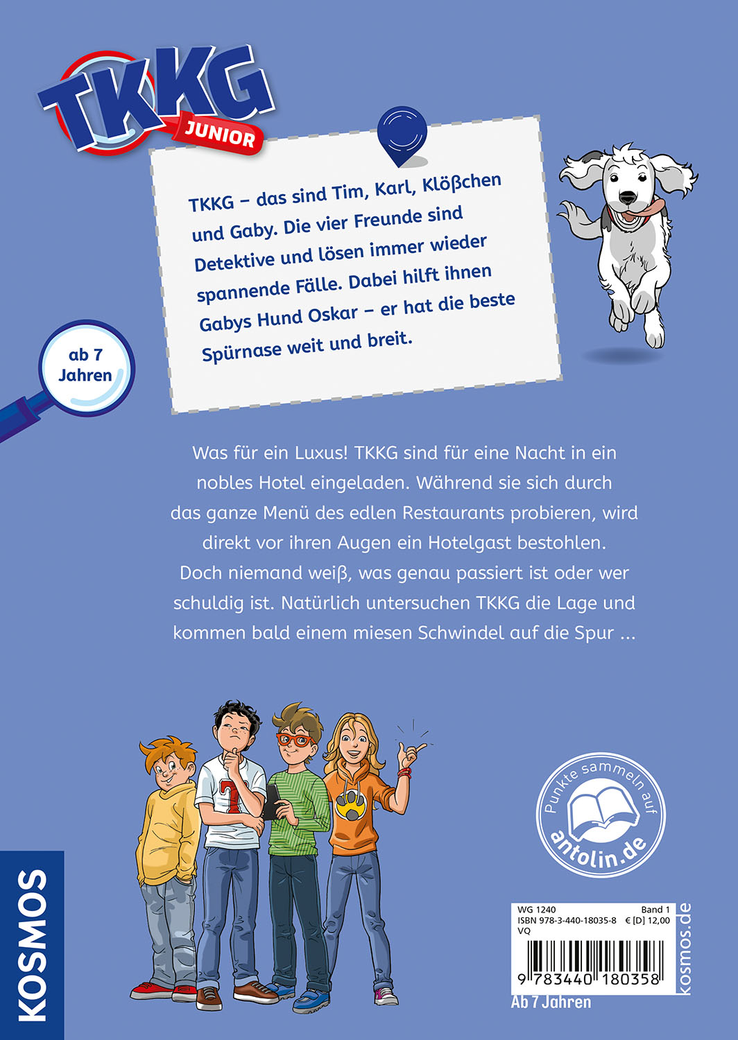 Kriminalfall im Luxushotel! Wer betrugt und klaut? Welcher Hotelgast hat etwas zu verbergen? Tim, Karl, Klößchen, Gaby und Hund Oskar ermitteln in viele Richtungen. Ein spannendes Abenteuer mit vielen Überraschungen. Mit vierfarbigen Zeichnungen, großer Schrift und einfachen Sätzen. Sicher lesen können mit TKKG.