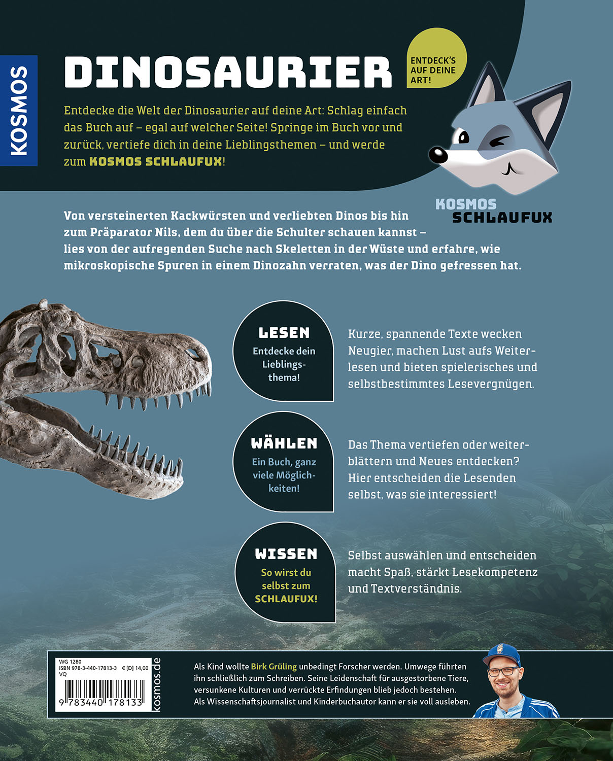 Mit dem SchlauFUX entdecken Kinder interaktiv das Thema Dinosaurier und begeben sich auf eine faszinierende Reise durch die prähistorische Welt. Jede Buchseite ist darauf ausgelegt, neue Wissensimpulse zu geben, die es den jungen Lesern ermöglichen, die Inhalte eigenständig und ohne feste Reihenfolge zu erkunden. Dank dieser Struktur können Kinder ihren Interessen folgen und sich intensiv mit Themen wie verschiedenen Dinosaurierarten, ihrem Lebensraum und den Umständen ihres Aussterbens befassen. Basierend auf dem bewährten Konzept der Choose-your-own-adventure-Bücher verbindet SchlauFUX spielerisches Lernen mit fundiertem Sachwissen. Dadurch wird das Lesen zu einem individuellen Erlebnis, das die Neugierde fördert und das Bedürfnis nach Entdeckung erfüllt.