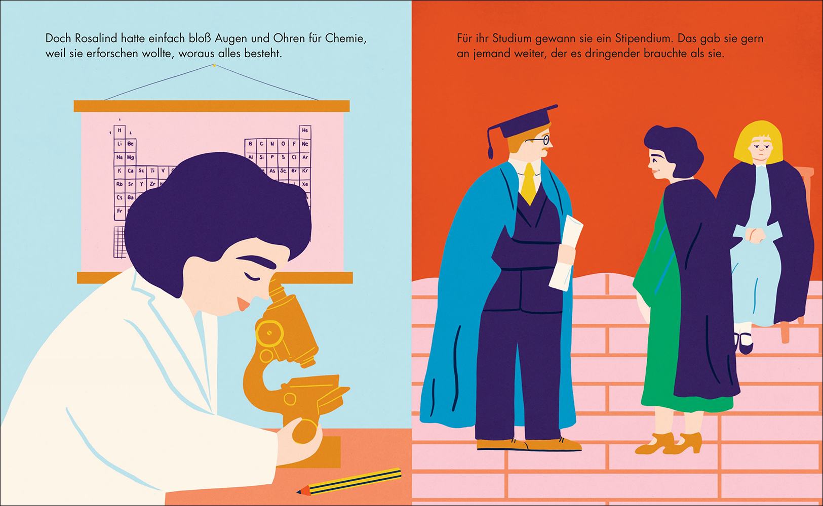Schon als kleines Mädchen will Rosalind alles über die Natur wissen. Mit siebzehn besteht sie die Aufnahmeprüfung für das Studium von Chemie und Physik an der Universität von Cambridge. Sie experimentiert mit Röntgenstrahlen. Die braucht man, um Fotos von den kleinsten chemischen Verbindungen herzustellen, den Molekülen. Schließlich liefert ihr berühmtes »Foto 51« die Voraussetzung für die Entschlüsselung der DNA-Moleküle, in denen alle Informationen über unsere Körper stecken. Eine bahnbrechende Entdeckung, für die später zwei Männer mit dem Nobelpreis gewürdigt wurden, den eigentlich sie verdient hätte.