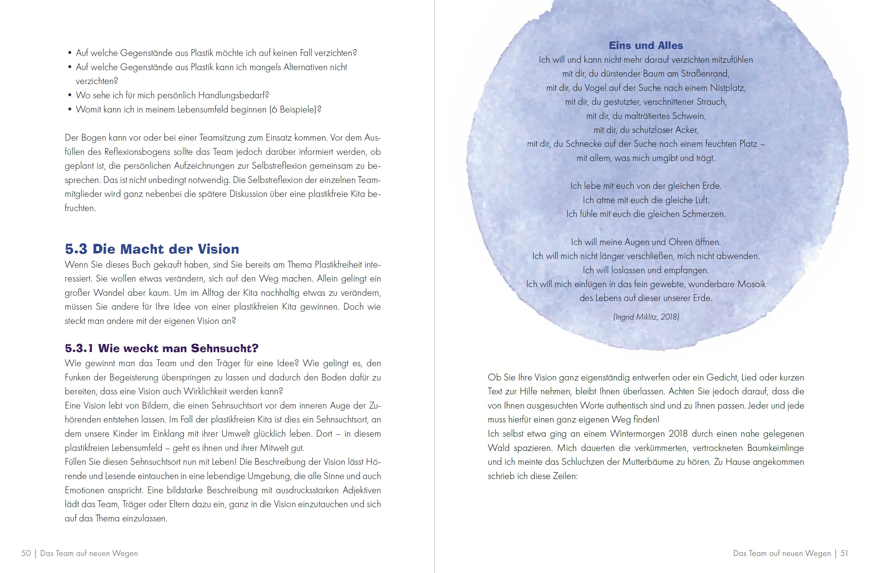 Ingrid Miklitz ist Dipl.-Sozialwissenschaftlerin und seit 1997 der Wald-/Naturraumpädagogik in Theorie und Praxis verbunden. Seit 2000 ist Miklitz erste Vorsitzende des LV der Wald- und Naturkindergärten BW e.V. und Herausgeberin der Zeitschrift „Draußenkinder“. Sie ist Autorin zahlreicher Bücher und Fachpublikationen zum Themenbereich „Kind und Natur“.