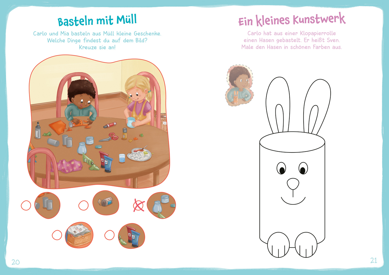 Der kleine Carlo ist auf den Spuren des Mülls unterwegs. Wohin gehört das Geschenkpapier, wenn es nicht mehr benötigt wird? Wer holt den Müll ab und was passiert dann damit? Und auch auf dem Recyclinghof gibt es viel zu entdecken. Mit Rätseln und Ausmalbildern lernen Kinder ab 3 Jahren spielerisch den Umgang mit Müll. Mit Labyrinthen, Schattenbildern und Suchbildern macht das richtig Spaß. Bunte Sticker helfen beim Lösen der Aufgaben. Eine tolle Beschäftigung für zu Hause und unterwegs.