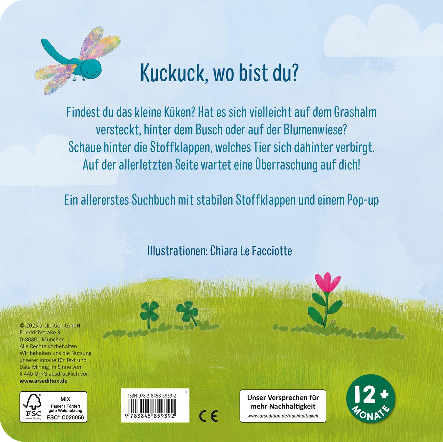 Auf der Wiese und im Garten gibt es viel zu entdecken. Wo bist du, kleines Küken? Lässt du dir den grünen Salat im Gemüsegarten schmecken? Sitzt du im Teich auf der Seerose? Schau hinter die Klappen und finde es heraus. Allererster Entdeckerspaß im handlichen Format für kleine Tierfans ab 12 Monaten!