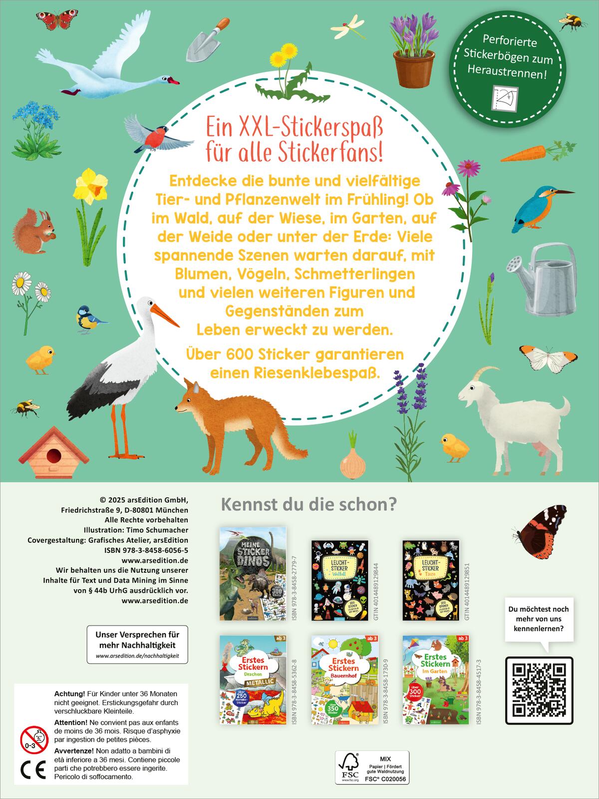 Entdecke die bunte und vielfältige Tier- und Pflanzenwelt im Frühling! Ob im Wald, auf der Wiese, im Garten, auf der Weide oder unter der Erde: Mit über 600 Stickern kannst du die unterschiedlichsten Szenen mit Tieren, Frühlingsblumen und vielen anderen Accessoires zum Leben erwecken. Ein Riesen-Stickerspaß für alle Stickerfans!