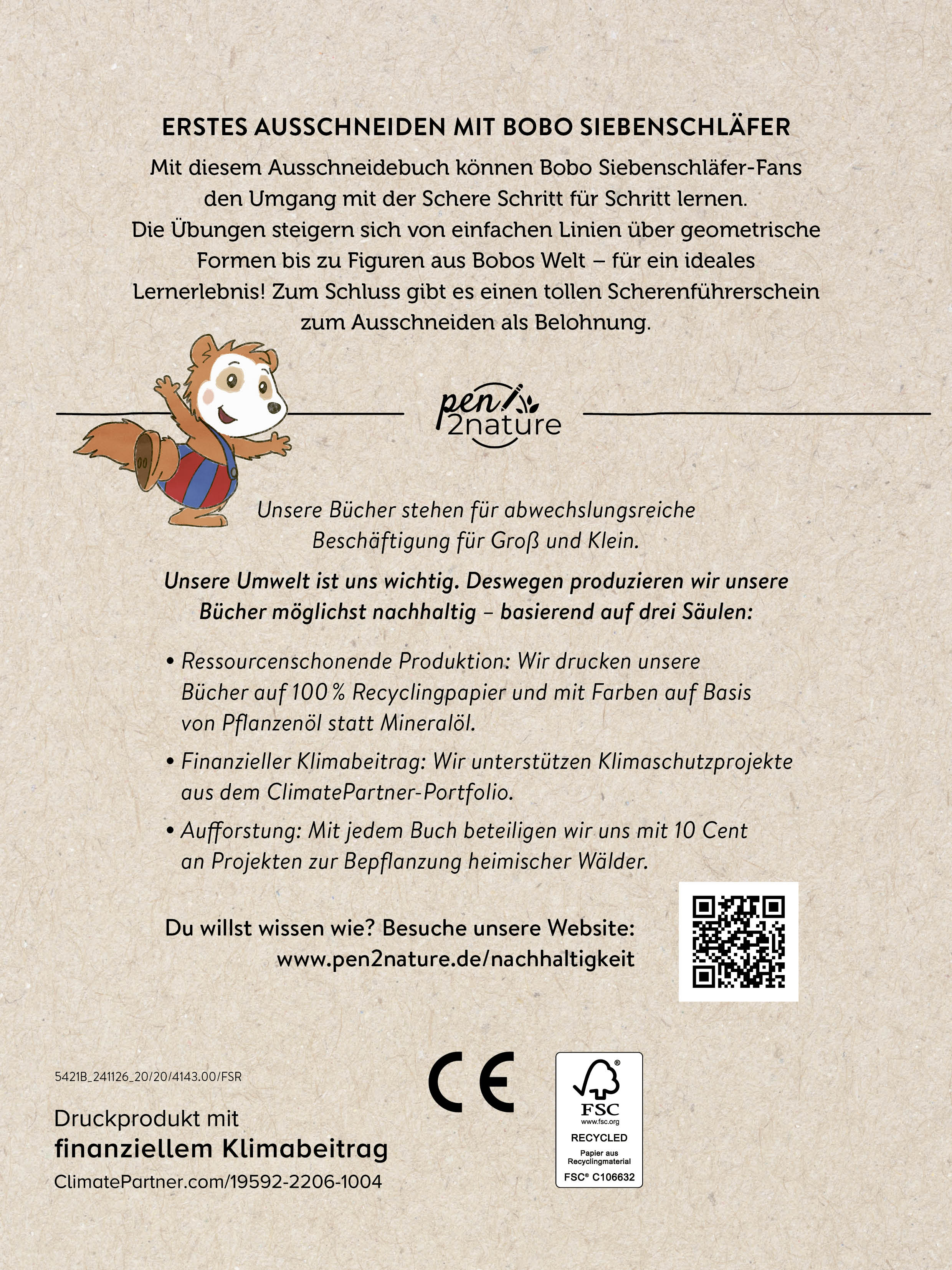 | Schlagworte | Ab 3 Jahren • aus Recyclingpapier • Ausschneidebuch • ausschneidebuch ab 3 • Ausschneiden • Ausschneiden lernen • Bastelbuch • Beschäftigung für drinnen • Beschäftigung für Kinder • Beschäftigungsbuch nachhaltig • Bobo Siebenschläfer • Buch • Bücher für Kinder • Buch für Kinder • einfache Beschäftigung • erstes Ausschneiden • erstes Schneiden • für kindergartenkinder • gegen Langeweile • Geschenk • Kinderbeschäftigung • Kinderbuch • Kinderbücher • Kindergarten • Kindergartenkind • Kita • Klimaneutrales Buch • klimapositiv • Kreative Beschäftigung • nachhaltiges Ausschneidebuch • nachhaltiges Bastelbuch • nachhaltiges Geschenk Buch • ökologische Bücher • p2n • pen 2 nature • pen2nature • pen to nature • Scherenführerschein • sinnvolle Beschäftigung • Übungen zum Ausschneiden • Umgang mit der Schere lernen • umweltbewusst • umweltfreundliche Bücher • Umweltverlag • unter 10 Euro • vorlagen zum ausschneiden • Vorschule • Vorschulkind • Zero Waste |