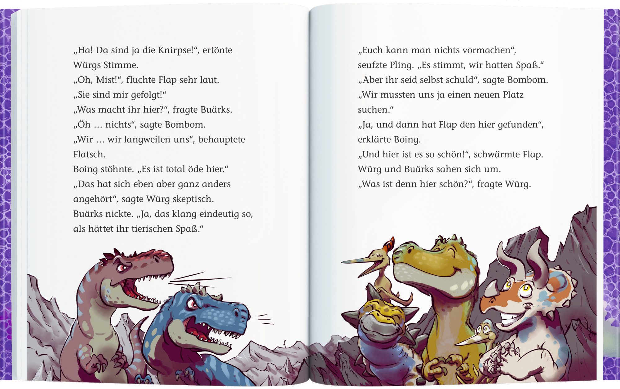 Boing und seine Dino-Bande können es nicht fassen: Zwei halbstarke Tyrannosaurier haben ihren Lieblingsplatz entdeckt und beanspruchen ihn nun für sich! Eines ist sicher: Gegen diese miesen Kerle haben die fünf Freunde keine Chance. Oder etwa doch? Triceratops-Mädchen Pling hat da auf einmal eine geniale Idee …