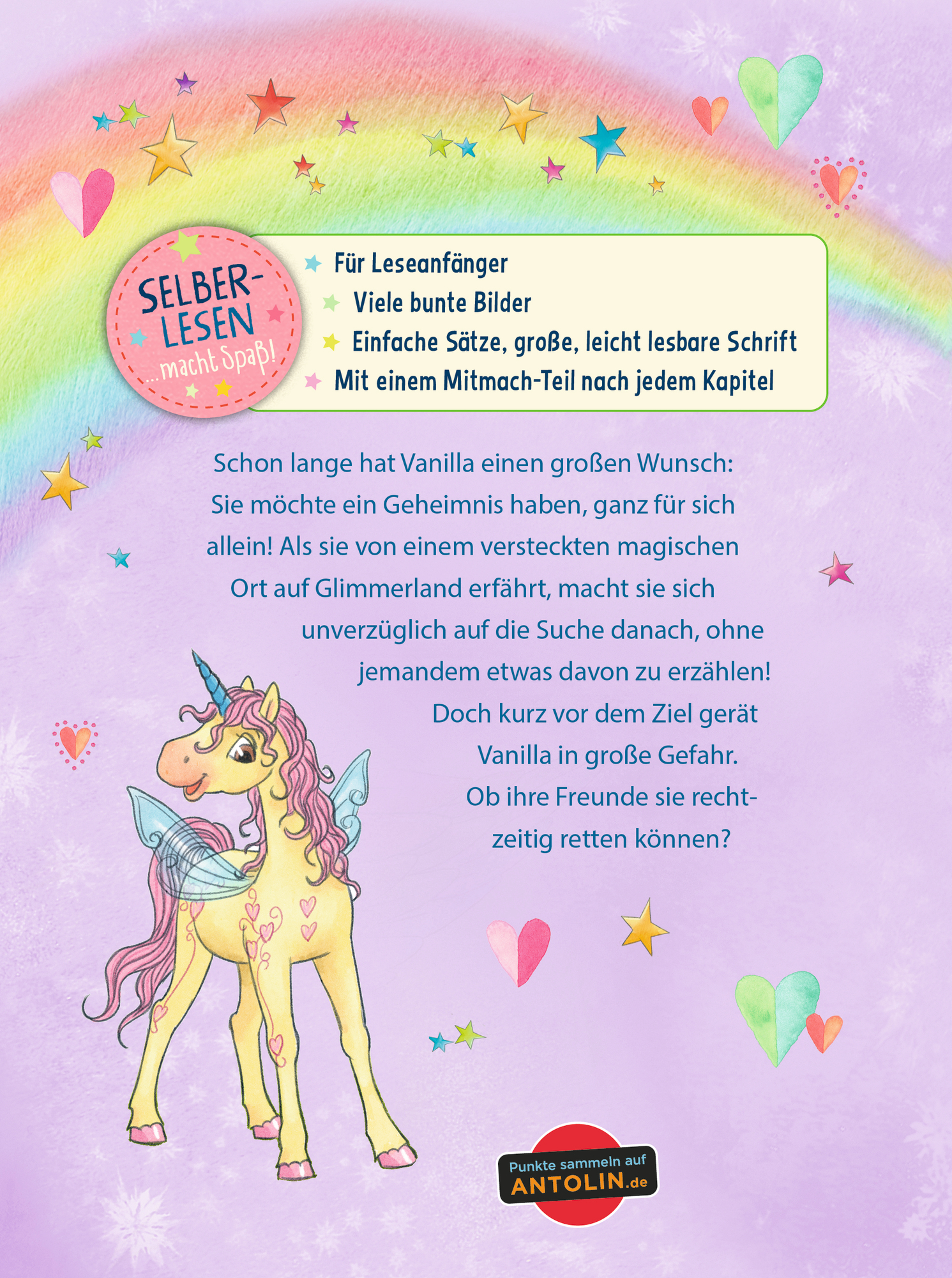 Schon lange hat Vanilla einen großen Wunsch: Sie möchte ein Geheimnis haben, ganz für sich allein! Als sie von einem versteckten magischen Ort auf Glimmerland erfährt, macht sie sich unverzüglich auf die Suche danach, ohne jemandem etwas davon zu erzählen! Doch kurz vor dem Ziel gerät Vanilla in große Gefahr. Ob ihre Freunde sie rechtzeitig retten können?