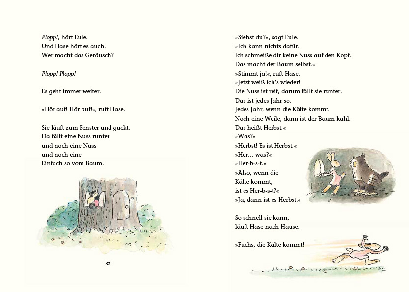 Mit viel Humor begleiten wir Fuchs und Hase durch alle (chaotischen) Jahreszeiten. Über kurze Sätze zu Beginn können Kinder leicht in den Text einsteigen und später gemeinsam mit Fuchs und Hase in die längeren Passagen hineinwachsen.