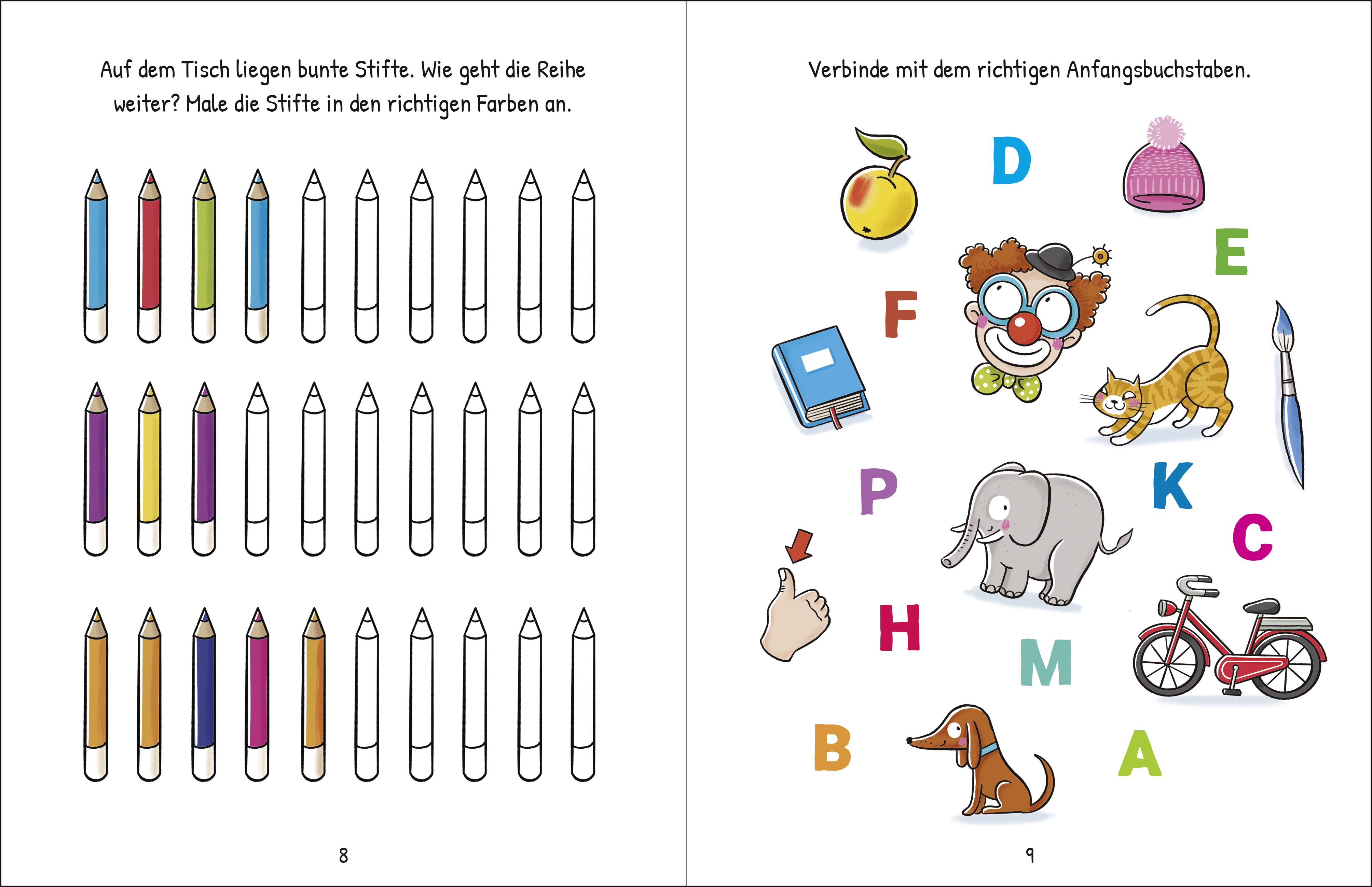 - Beschäftigungsbuch mit abwechslungsreichen Bilderrätseln: Paare finden, Suchbilder, erste Buchstaben und Zahlen erkennen u.v.m.