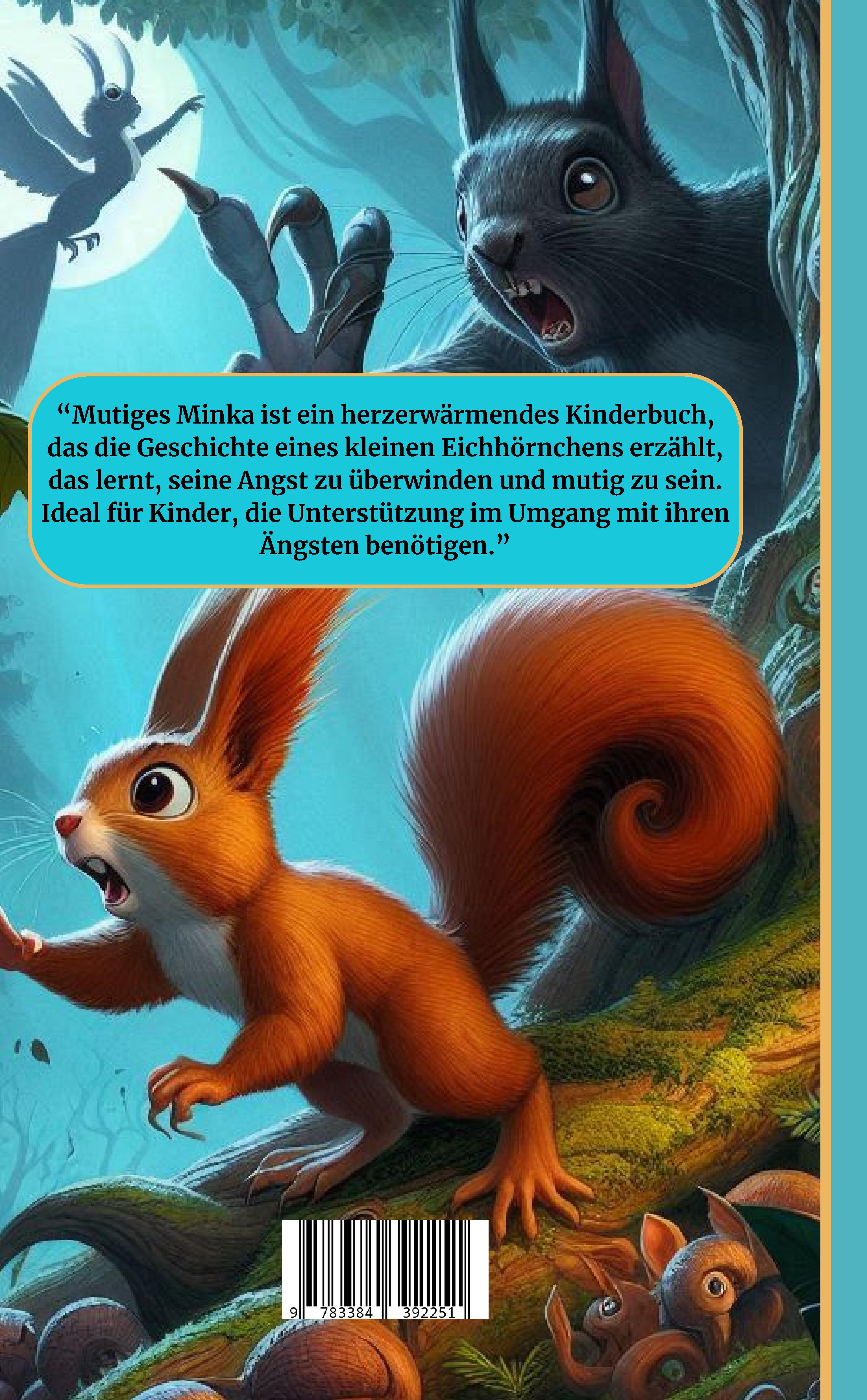 "Mutiges Minka - Das kleine Eichhörnchen und der dunkle Wald" ist ein bezauberndes Kinderbuch, das die Geschichte von Minka, einem mutigen kleinen Eichhörnchen, erzählt. Minka steht vor der Herausforderung, ihre Ängste zu überwinden, als sie sich auf ein Abenteuer durch den dunklen Wald begibt.Das Buch ist einfühlsam und liebevoll gestaltet, um jungen Lesern praktische Techniken zur Angstbewältigung zu vermitteln. Durch farbenfrohe und detaillierte Illustrationen werden die Kinder in Minkas Welt hineingezogen und lernen Schritt für Schritt, wie sie ihre eigenen Ängste erkennen und bewältigen können.Die Geschichte zeigt, dass es normal ist, Angst zu haben, aber dass jeder die Kraft in sich trägt, mutig zu sein und Hindernisse zu überwinden. Mit einfachen, nachvollziehbaren Übungen werden die Kinder dazu ermutigt, ihre Gefühle zu erforschen und sich Unterstützung zu holen, wenn sie sie brauchen.