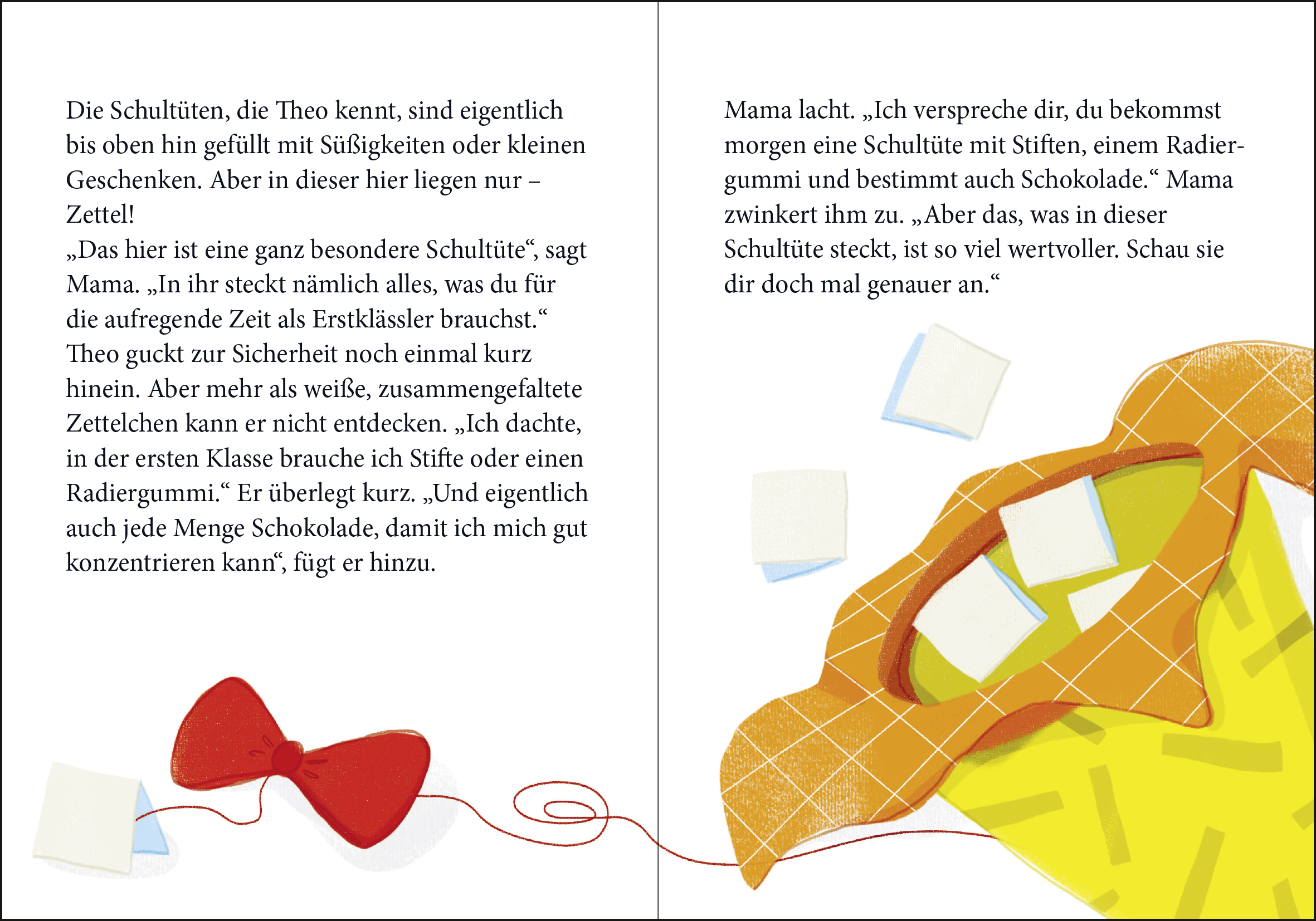 Theos Bauch kribbelt. Ziemlich doll und auch schon ziemlich lange. Denn bald steht sein allererster Schultag an und das macht ihm ein bisschen Angst. Doch am Abend vor der Einschulung überreichen ihm seine Mama und seine große Schwester Sina eine Schultüte. Zu Theos Überraschung ist diese nicht gefüllt mit Schokolade oder Geschenken, sondern Zetteln. Und jeder von ihnen hält einen ganz besonderen Wunsch für Theo bereit ... Eine wunderschöne Geschichte für Mädchen und Jungen ab 5 Jahren, die Mut macht und sich perfekt als Geschenk zum Schulstart eignet!