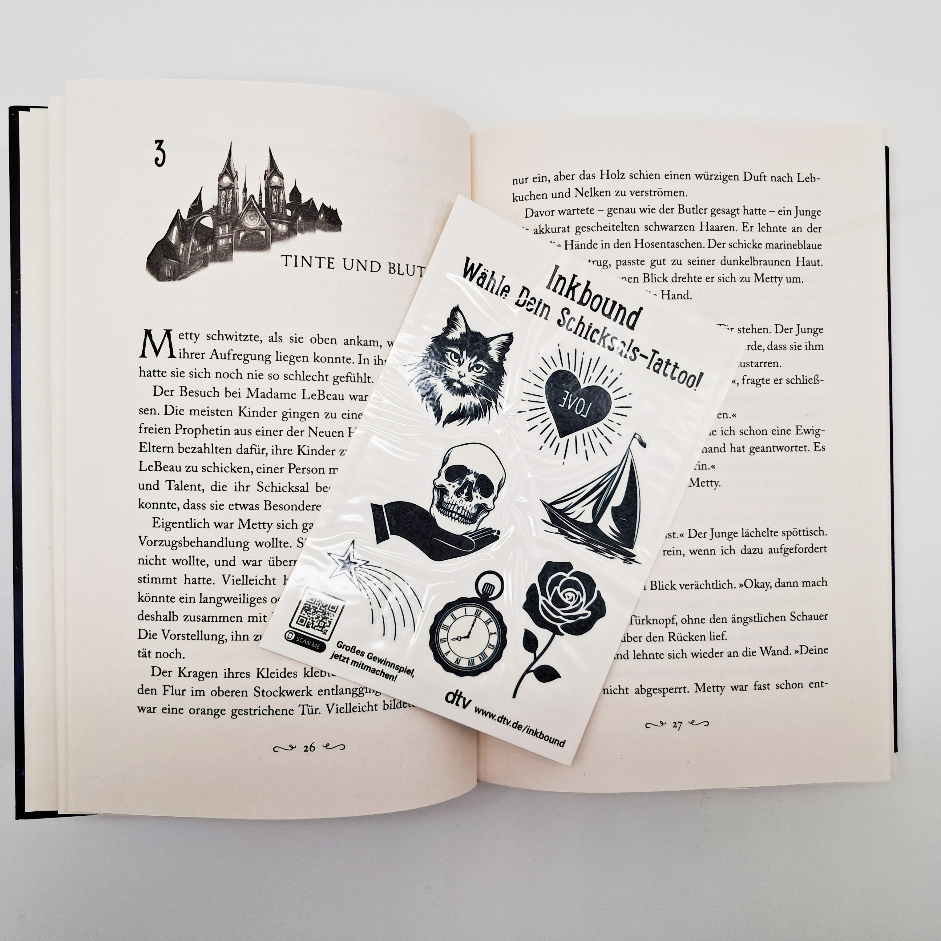 - Mit Tattoo-Stickern in der ersten Auflage