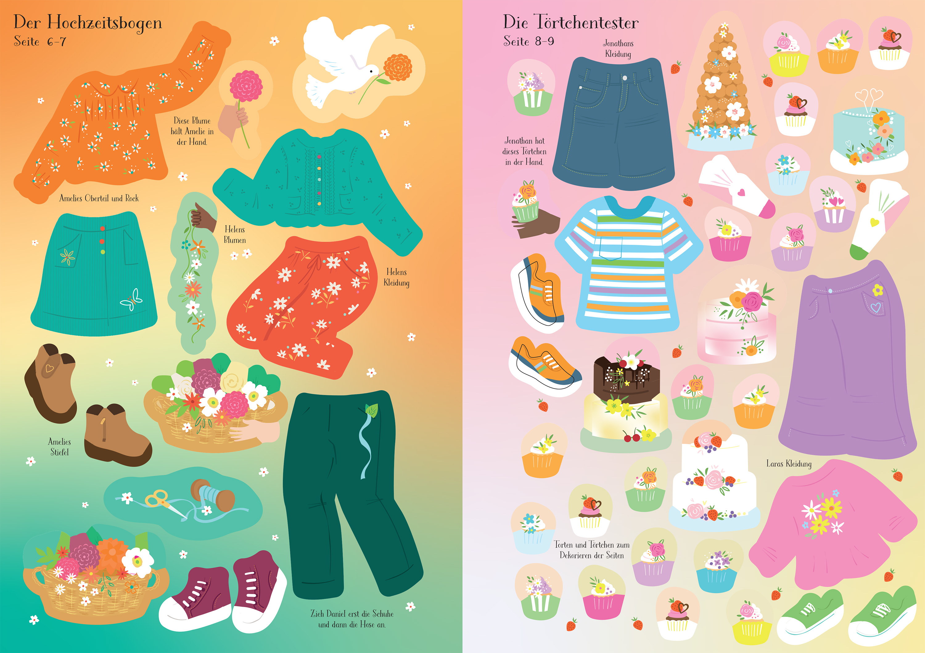 Begleite Helen und ihre Freundinnen und Freunde auf eine Hochzeitsfeier. Hilf ihnen bei der Kleiderwahl sowie beim Schmücken des Hochzeitsbogens und lass sie all die Köstlichkeiten vom Büfett probieren – mit über 220 wiederablösbaren Stickern kannst du die Hochzeitsszenen immer wieder bunt gestalten.