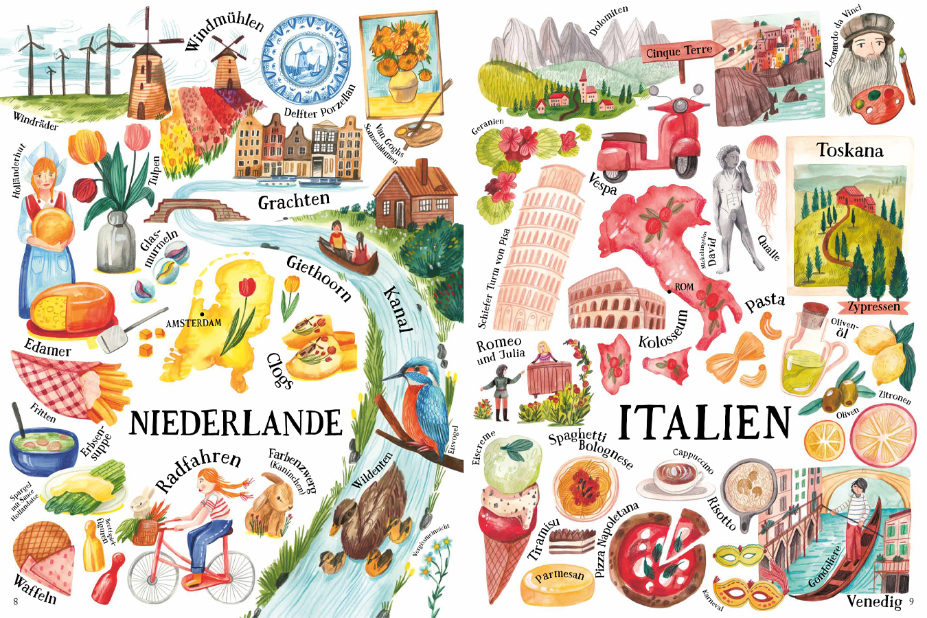 In diesem wimmeligen Bilderbuch für Kinder ab 8 Jahren warten 60 aufregende Länder rund um den Globus darauf, entdeckt zu werden. Unzählige liebevolle Illustrationen erwecken die wilde Natur Kanadas, die beeindruckende Architektur Myanmars oder die Düfte der italienischen Küche zum Leben und regen die Fantasie an. Geh auf Safari in Tansania, erlebe Japan während der Kirschblüte und tanze Tango in Argentinien! Jedes Land wird in seiner ganz eigenen Farbwelt auf der Seite lebendig. Begib dich auf eine abenteuerliche Reise um die Welt und entdecke die Kulturen, Geschichten und Menschen, die jedes Land zu einem einzigartigen Erlebnis machen!