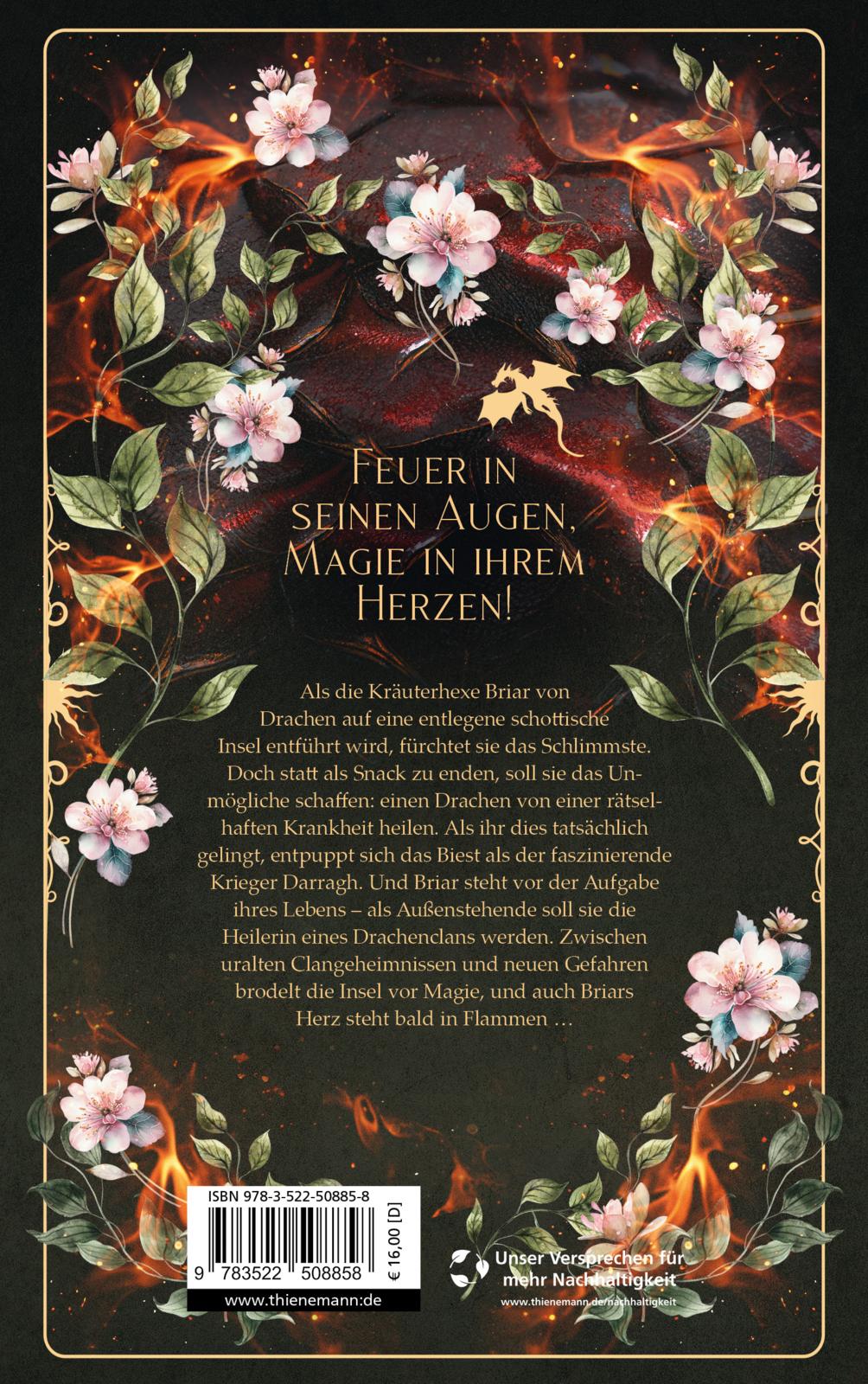 Als die Kräuterhexe Briar von Drachen auf eine entlegene schottische Insel entführt wird, fürchtet sie das Schlimmste. Doch statt als Snack zu enden, soll sie das Unmögliche schaffen: einen Drachen von einer rätselhaften Krankheit heilen. Als ihr dies tatsächlich gelingt, entpuppt sich das Biest als der faszinierende Krieger Darragh. Und Briar steht vor der Aufgabe ihres Lebens - als Außenstehende soll sie die Heilerin eines Drachenclans werden. Zwischen uralten Clangeheimnissen und neuen Gefahren brodelt die Insel vor Magie, und auch Briars Herz steht bald in Flammen ...