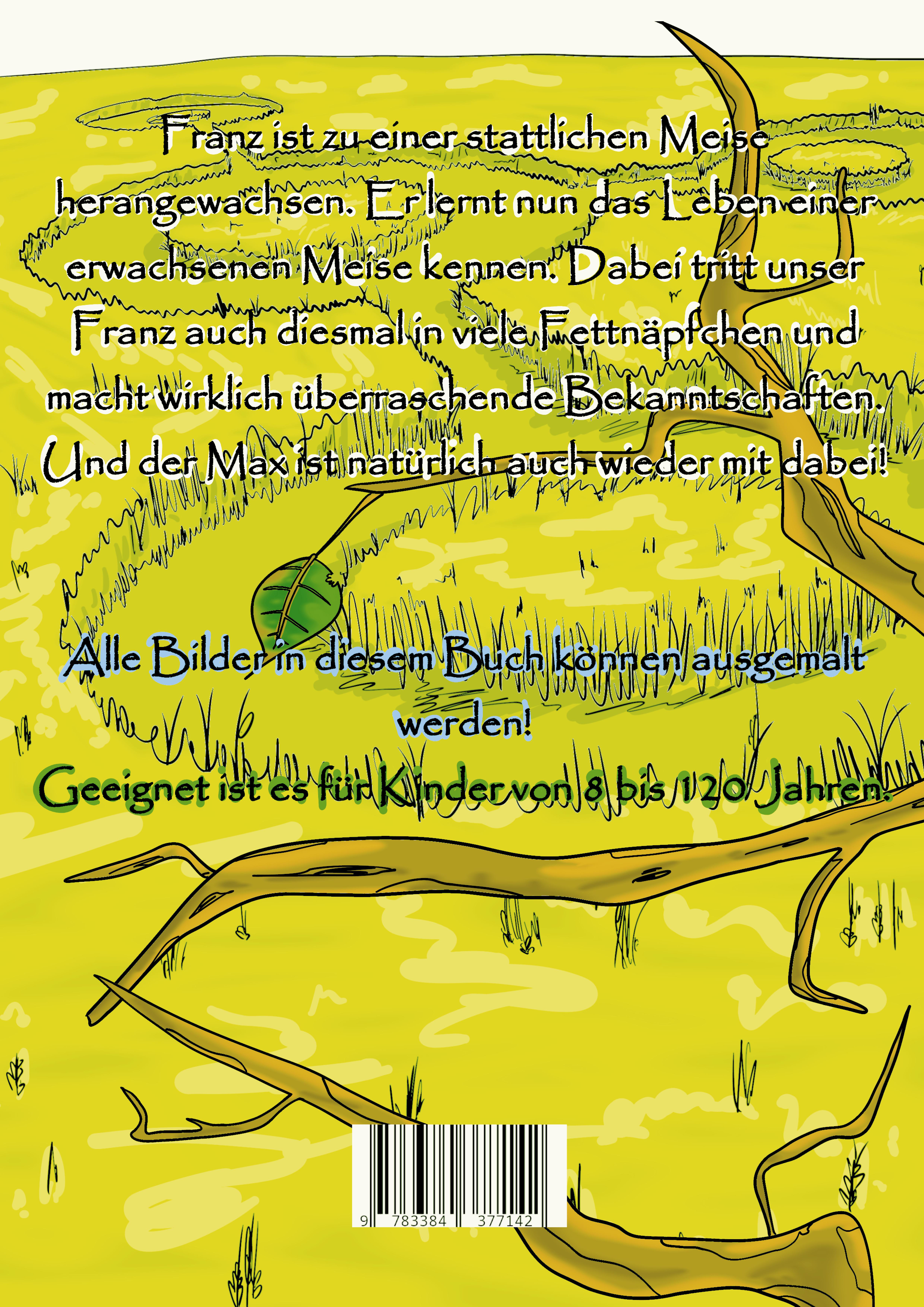 Franz die Meise ist ein kleiner Vogel der in seinem bereits vierten Buch, eine kleine witzige Abenteuergeschichte überstehen muss. Die Geschichte wird von vielen lustigen Bildern begleitet. Dabei sind alle Bilder in diesem Buch für Kinder, zum Ausmalen gedacht und nicht koloriert. Dafür ist aber eine klitzekleine Prise Humor gratis mit dabei. Das Buch ist im Format DIN A4 in moderater Schriftgröße gut lesbar. Die Bilder des Buches sind zur Hälfte ganzseitig gehalten. Alle Kinder ab 8 Jahren können sich diesem Werk widmen. Auch die jung gebliebenen Erwachsenen lädt der Autor zum Anmalen und Schmökern ein. Sie können sich auf über 70 Seiten und ebenso vielen Bildern nach Herzenslust austoben und unserer Meise Franz ein buntes Leben gestalten.In diesem Buch können Sie erfahren, wie Meisen ihre Nester bauen und wie diese "einkaufen". Bestimmt lernen Sie neben dem Max, einem Förster und einer Amtsmeise auch ganz viele verschiedene Löwen kennen. Oder waren das vielleicht Möwen? Ganz Aufmerksame, erfahren, was unser Franz unter dem Begriff "Pizzahungrigkeit" versteht. Falls Sie sich immer schon mal gefragt haben, was Kornkreise sind und wissen wollen, wer diese macht, sind Sie hier vermutlich richtig!