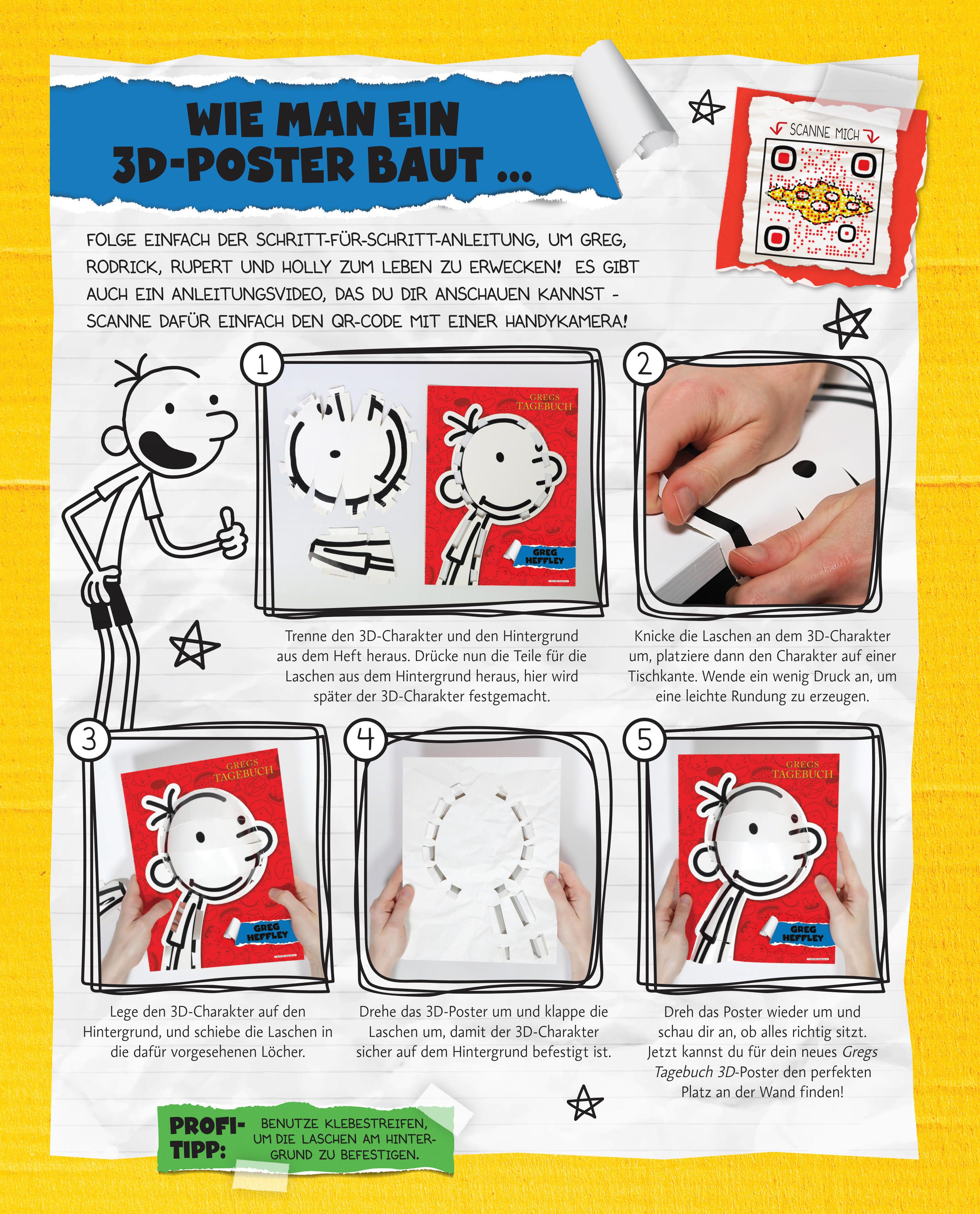 Kreativer Bastelspaß für Gregs-Tagebuch-Fans - mit vier heraustrennbaren 3D-Postern zum Zusammenbauen