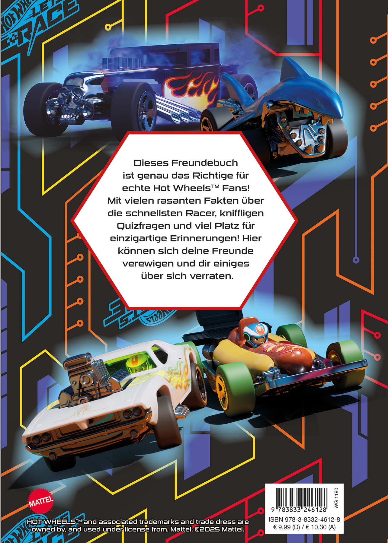 Dieses Freundebuch ist genau das Richtige für echte Hot WheelsTM Fans! Mit vielen rasanten Fakten über die schnellsten Racer, kniffligen Quizfragen und viel Platz für einzigartige Erinnerungen! Hier können sich deine Freunde verewigen und dir einiges über sich verraten.