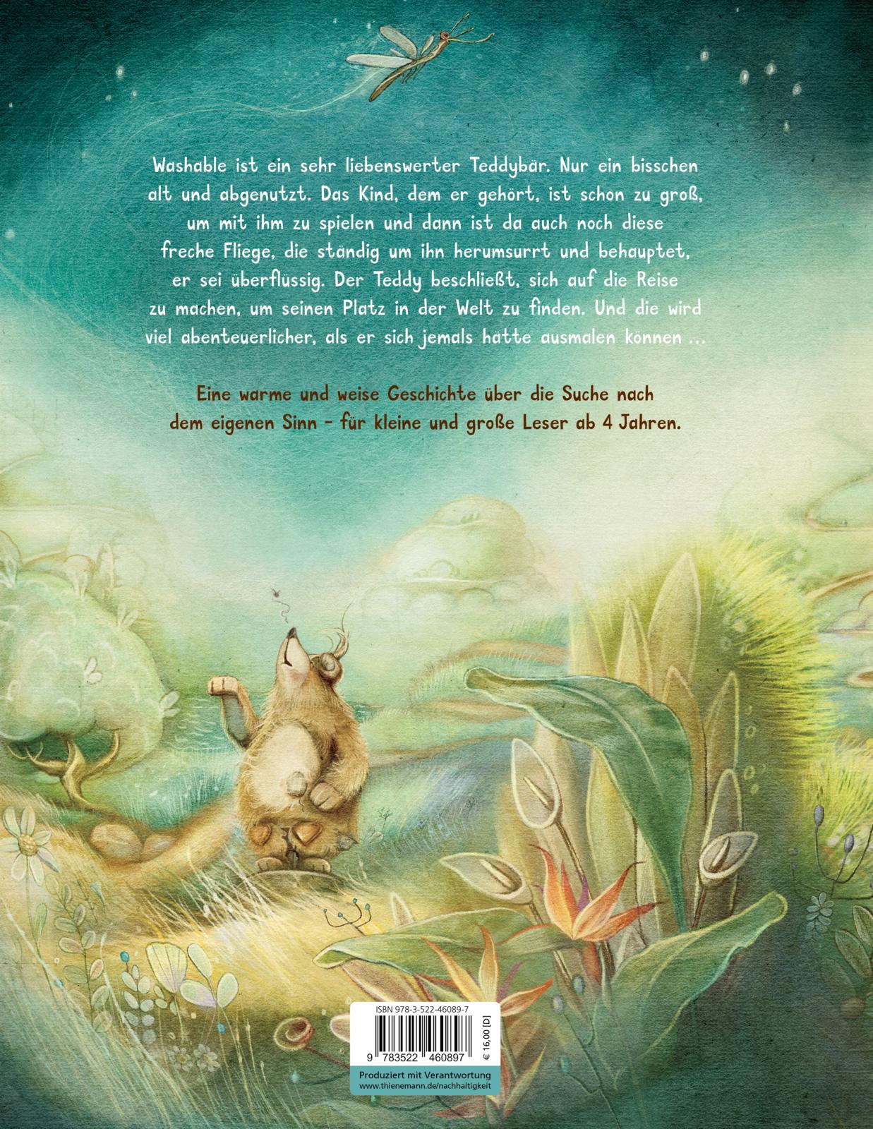 Washable ist ein wirklich netter Teddybär. Er ist nur ein bisschen abgeschabt und schon ziemlich alt. Das Kind, dem er gehört, ist längst zu groß, um noch mit ihm zu spielen. Da kann man sich schon einmal über den Sinn seines Daseins Gedanken machen. Ganz besonders, wenn eine impertinente Fliege ständig um einen herumsurrt und sagt, man sei dumm und sinnlos. Teddy zieht also los und will erfahren, wozu er gut ist. Ob ihm die anderen Tiere wohl weiterhelfen können?