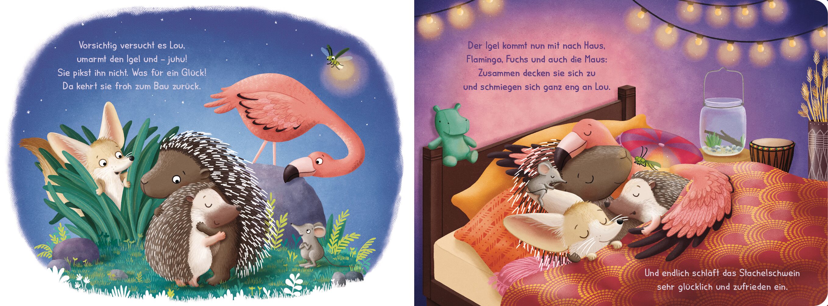 Wenn Lou bloß jemanden zum Kuscheln hätte! Doch das Stachelschwein ist viel zu piksig. Schnell sucht sie sich Hilfe bei ihren Freunden. Ob Luftballons, Zuckerwatte oder Vogelfedern die Stacheln wohl weniger piksig machen?