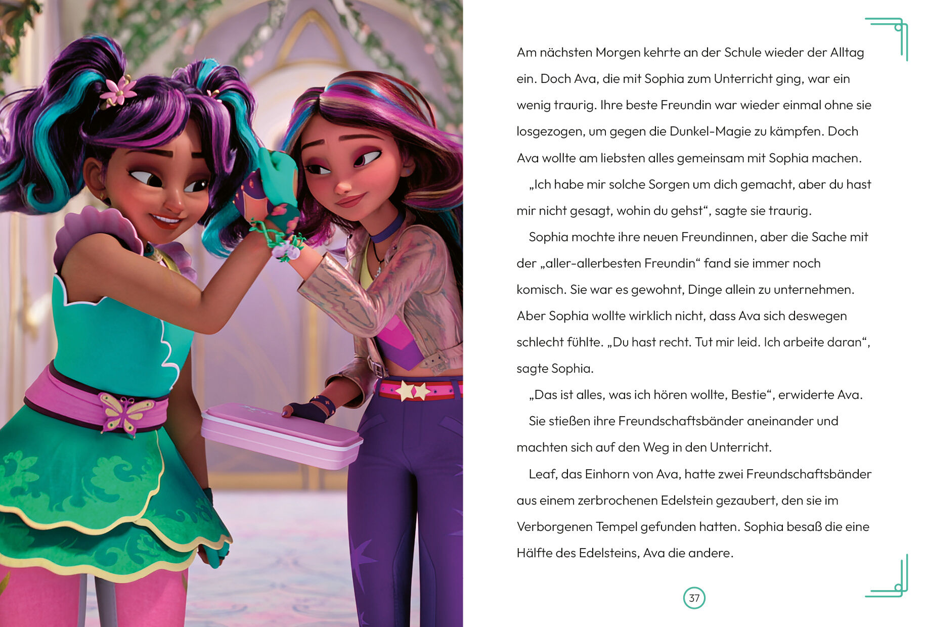 Unter dem Sternenglanz-See: Das Wasser der Academy wurde von Dunkel-Magie vergiftet und die Einhörner drohen ihre Kräfte zu verlieren. Bei der Rettung des Sternenglanz-Sees bekommt Sophia unerwartete Hilfe.Der Wahrsage-See: Sophia will die Botschaft der flüsternden Weiden entschlüsseln. Daher schwänzt sie die Partyplanung und reitet zum Wahrsage-See - obwohl sie Ava versprochen hat, das nicht zu tun.Der zerbrochene Edelstein: Das Saphir-Team versucht alles, damit Sophia und Ava sich wieder vertragen. Doch es warten noch viel größere Probleme: Ein gemeines Duo hat es auf das Dunkelherz abgesehen.Für alle Einhorn-Fans ab 6 Jahren