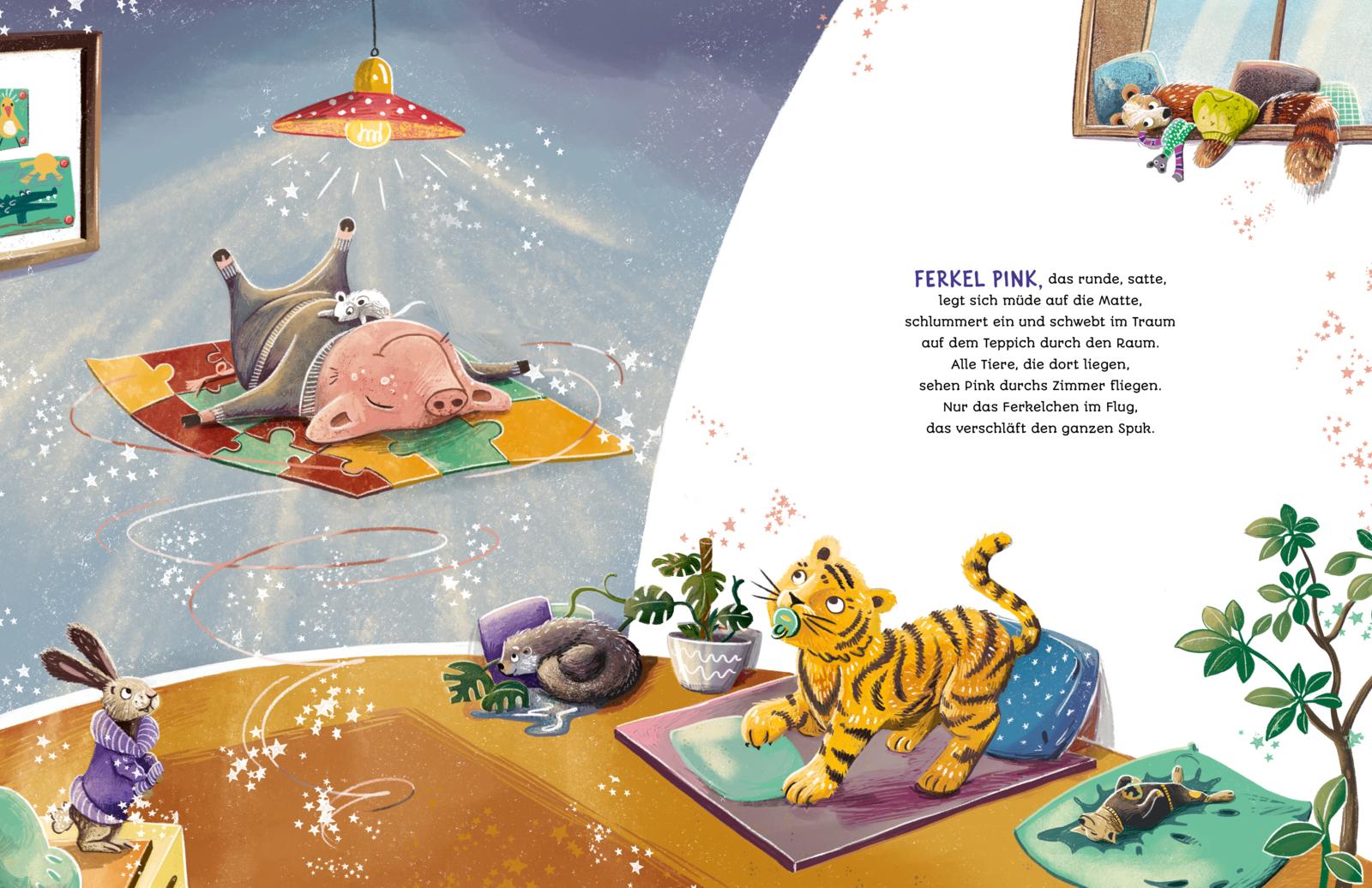 Im Kindergarten ist immer was los! Erst recht, wenn es ein Kindergarten voller Zaubertiere ist. Und so unterschiedlich die kleinen Tierkinder auch sein mögen - eins verbindet sie: ihr Geheimnis, die Magie! Ferkelchen Pink kann beim Mittagsschlaf durchs Zimmer fliegen, Papagei Piep spricht die Sprachen aller Tiere. Mops Hops ist so schnell, dass er in einer einzigen Stunde einmal um die Erde flitzten kann, und bei Wolf Waldemar wird alles, was er zeichnet, lebendig. Auch die Erzieherin hat eine ganz besondere Fähigkeit: Sie macht ihren Giraffenhals so lang, dass er bis in den Himmel ragt. So hat sie ihre Schützlinge immer im Blick und verpasst keinen einzigen magischen Moment in diesem besonderen Kindergarten.