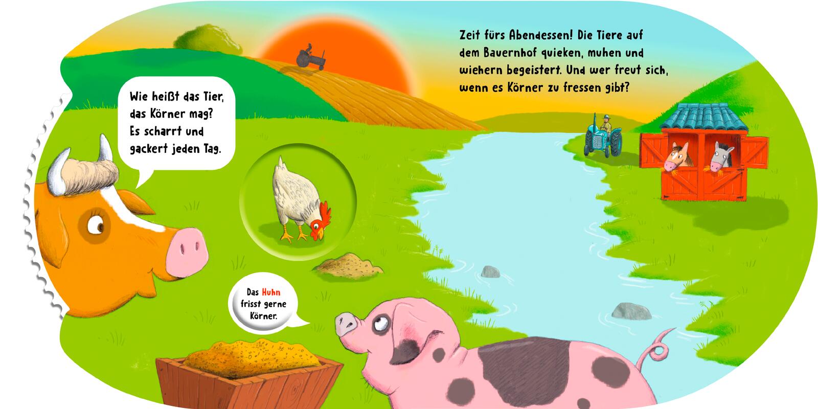 Mit der beweglichen Drehscheibe lassen sich die Tiere zuordnen und ganz nebenbei lernen schon die Allerkleinsten eine ganze Menge Neues über ihre Lieblingstiere.